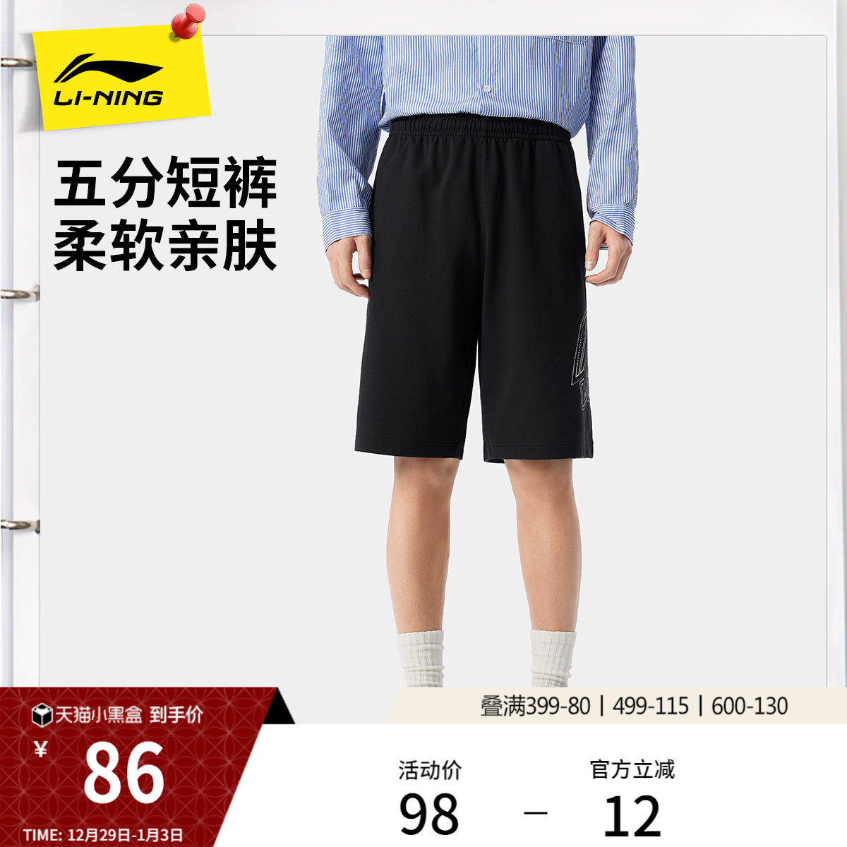 李宁运动短裤男士夏季运动时尚五分裤休闲潮流裤子针织印花运动裤