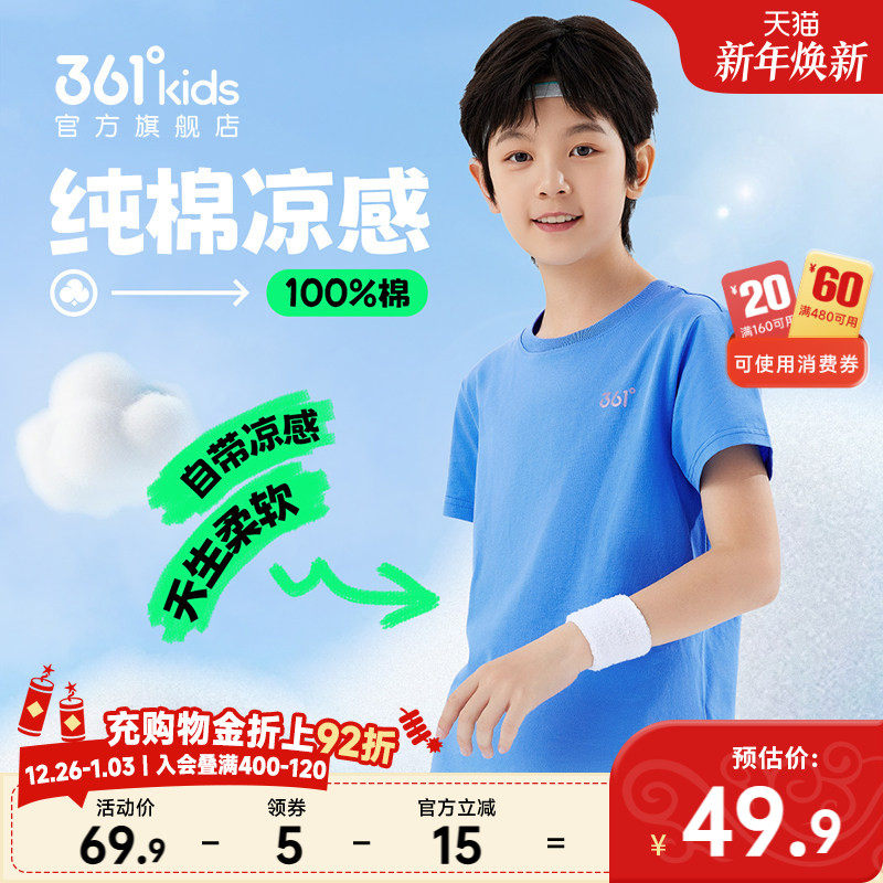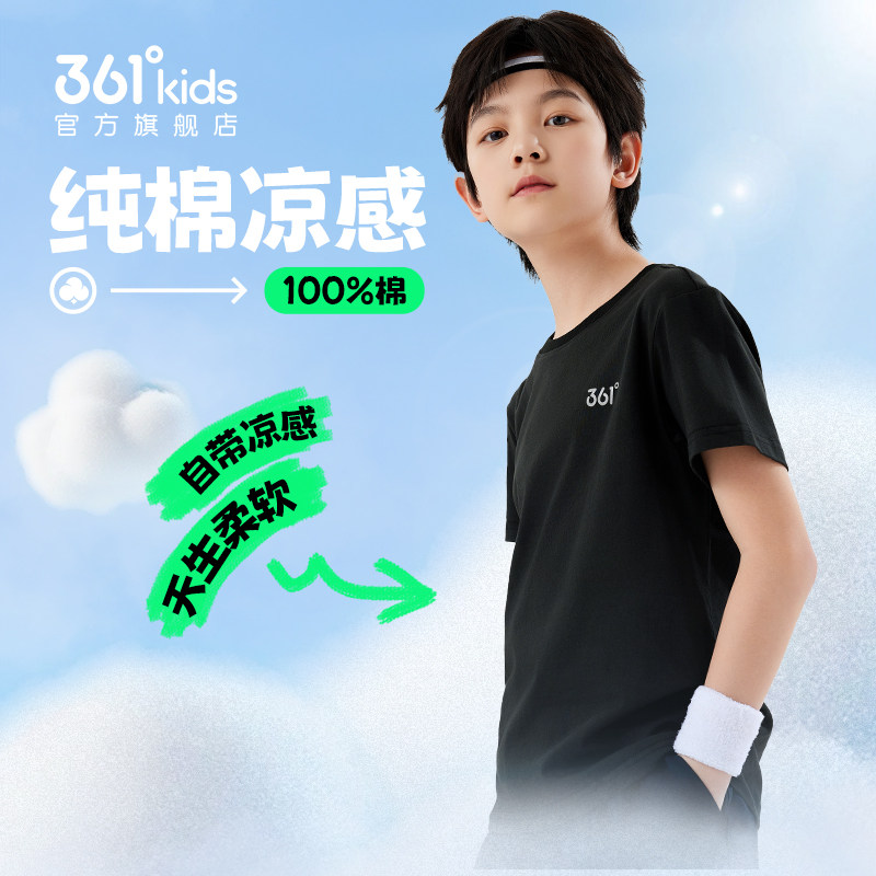 361童装男童短袖纯棉t恤大童运动上衣夏装半袖儿童透气女童短T