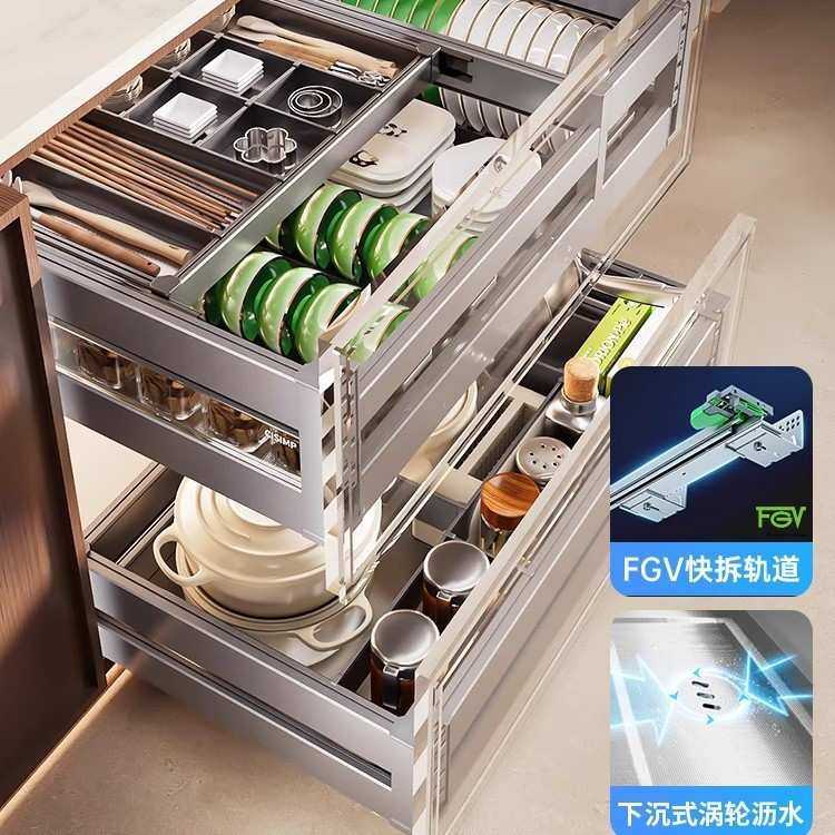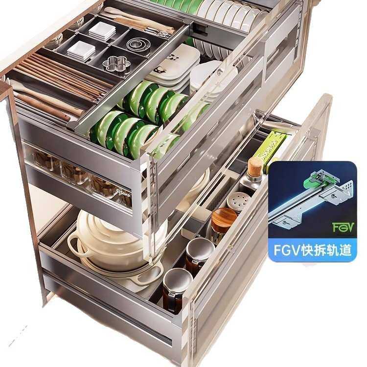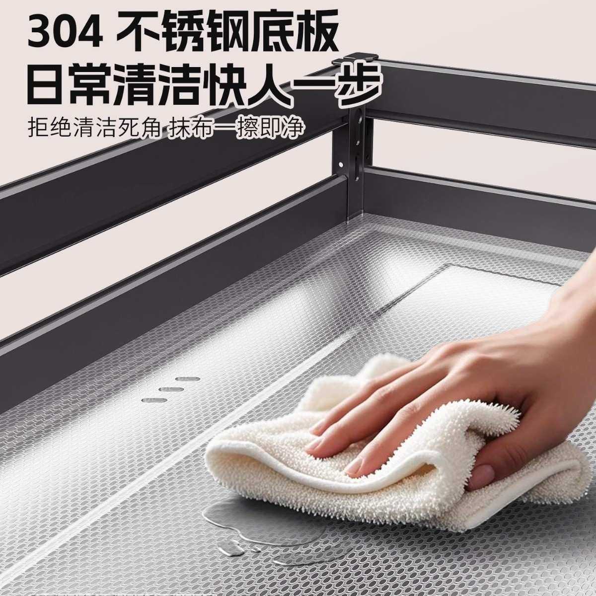 拉篮家用厨房橱柜抽屉式双层碗篮304不锈钢厨柜抽拉式碗碟架碗柜