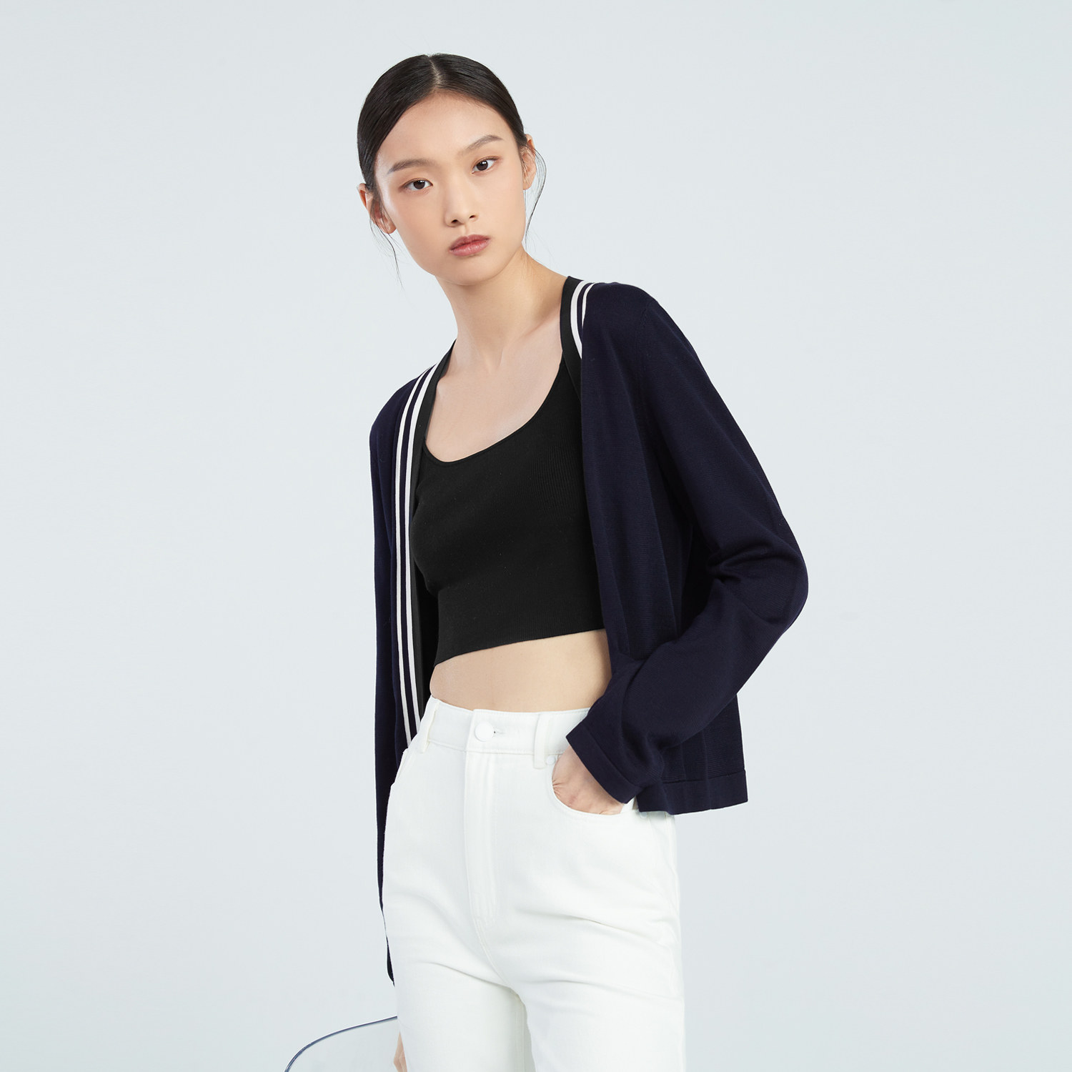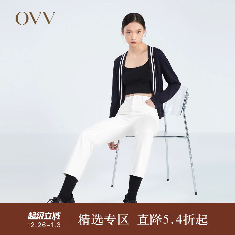 OVVOutlet 春夏新款女桑蚕丝长绒棉质混纺针织开衫外套