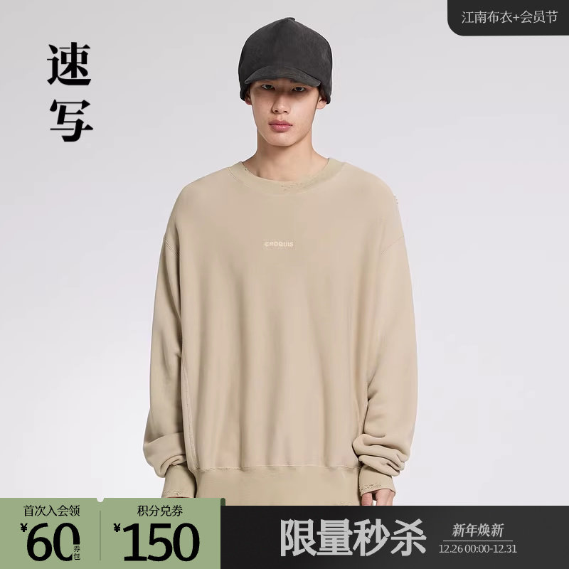 速写outlets奥莱男装春秋折扣新款卫衣棉质宽松圆领套头上衣潮流