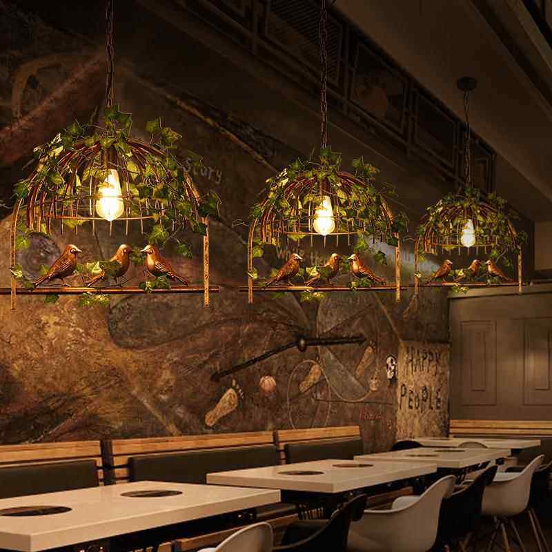 创意绿植物小鸟吊灯北欧loft复古工业风餐厅酒吧台服装店铁艺鸟笼