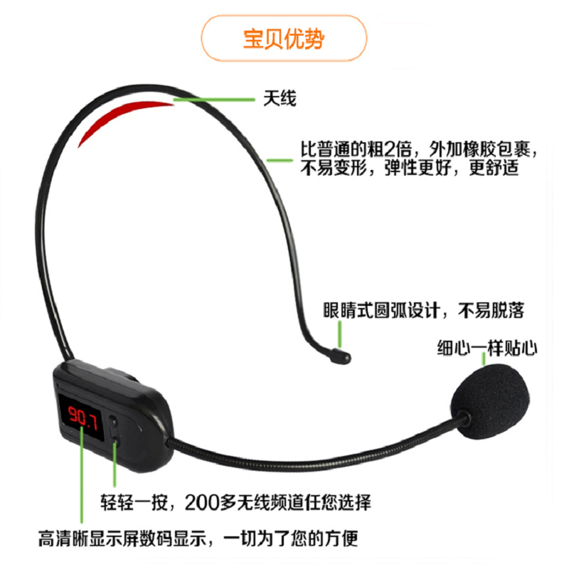 FM无线收音机调频麦克风话筒扩音器头戴式耳麦教师导游地摊专用麦