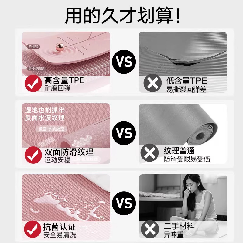 初学者瑜伽垫健身垫防滑地垫家用tpe运动双人垫微瑕加宽加长垫子