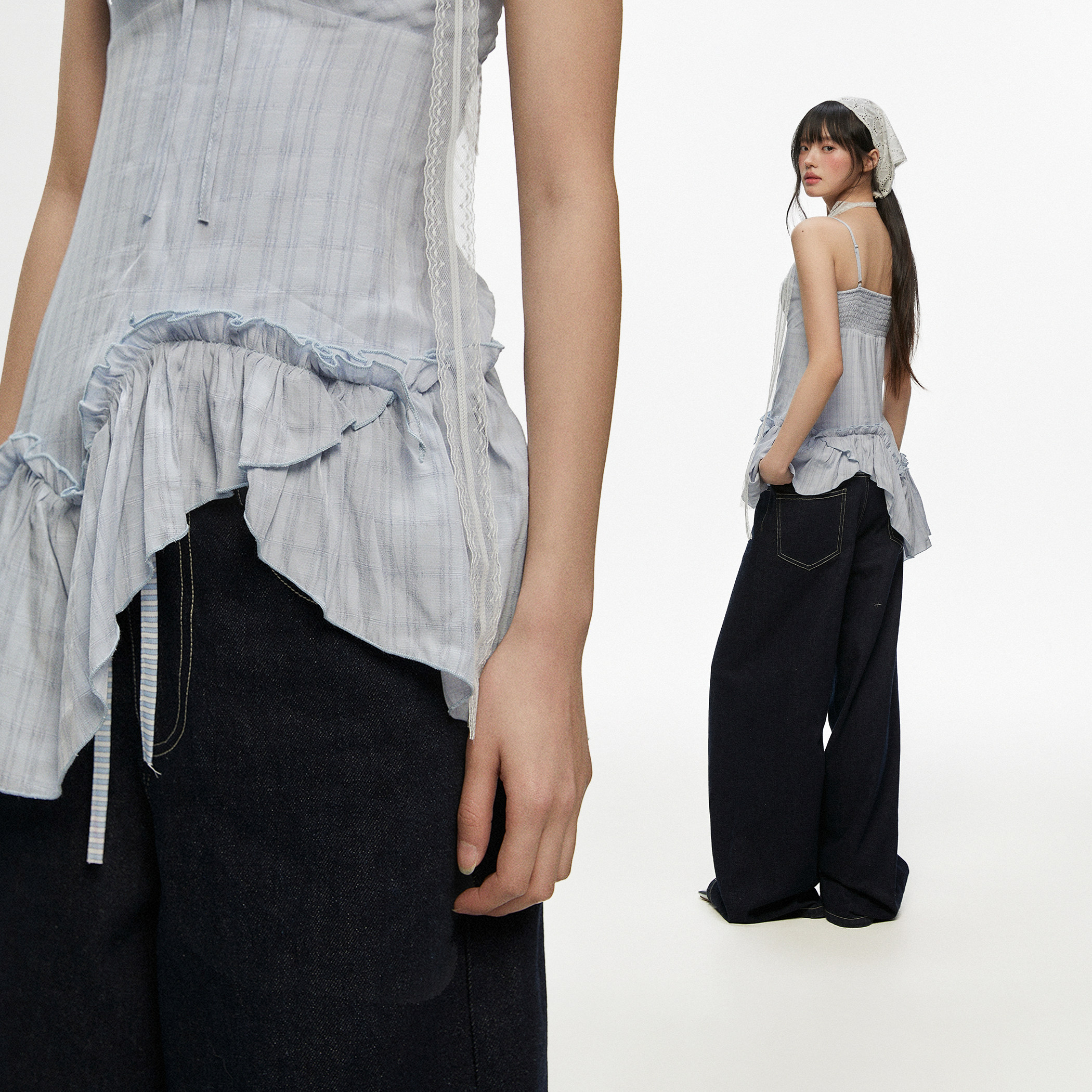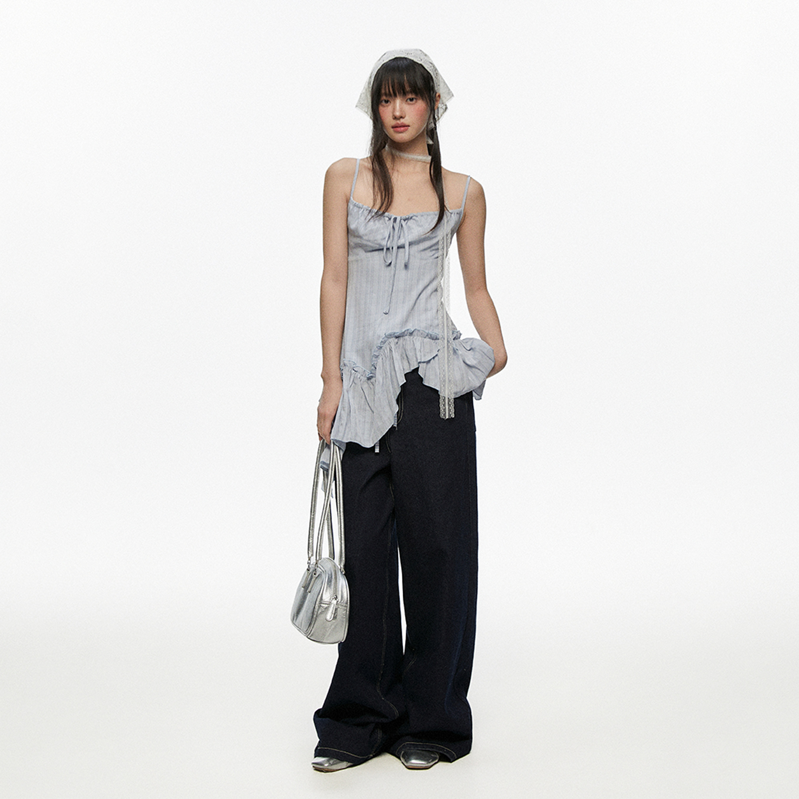 CyNi 法式甜美设计感不规则蝴蝶结斜边吊带连衣裙