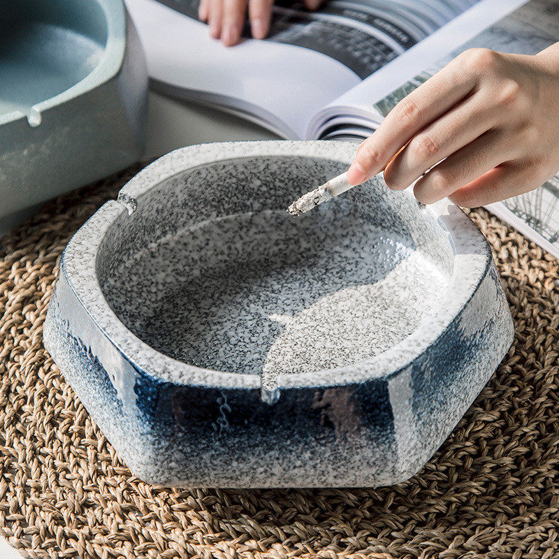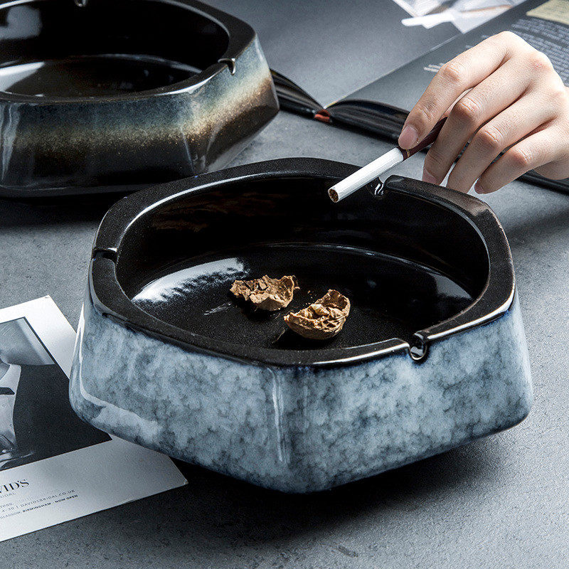 时尚烟灰缸大号陶瓷烟灰缸桌面垃圾收纳缸茶具茶洗中式客厅家用