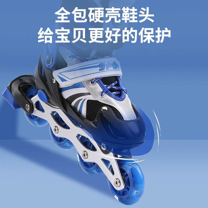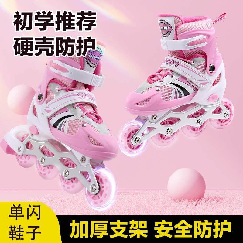 溜冰鞋儿童男女童可调单闪光旱冰鞋滑冰鞋轮滑鞋3-4-5-6-15岁