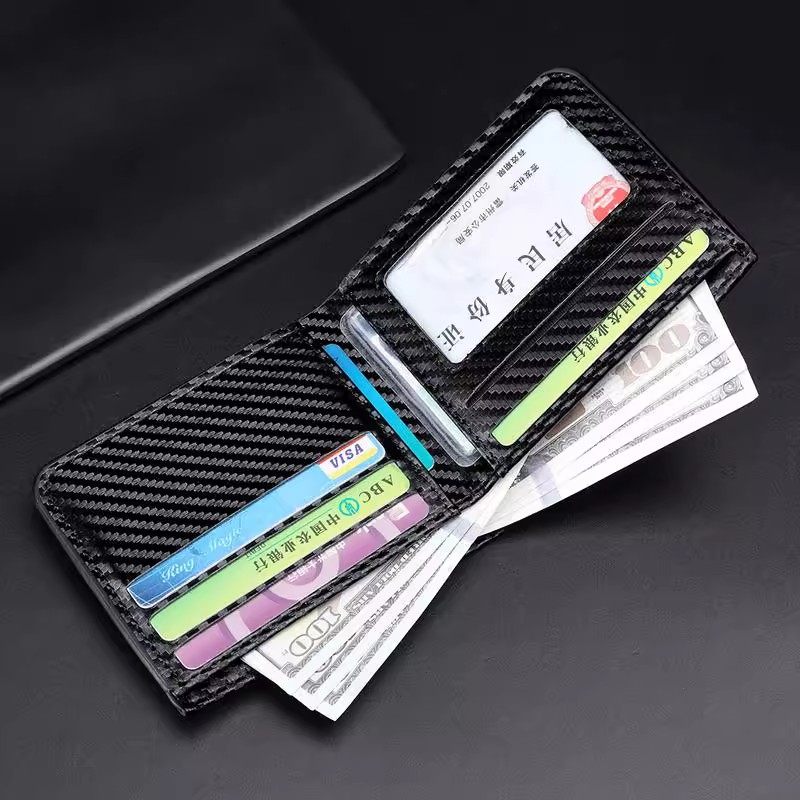 商务钱包男款2025新款多功能二合一高端短款碳纤维纹男士钱夹卡包