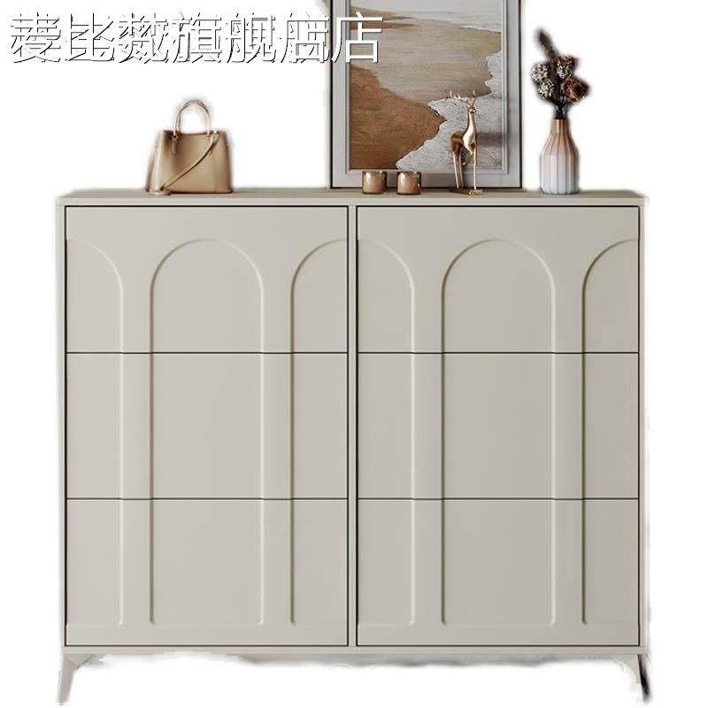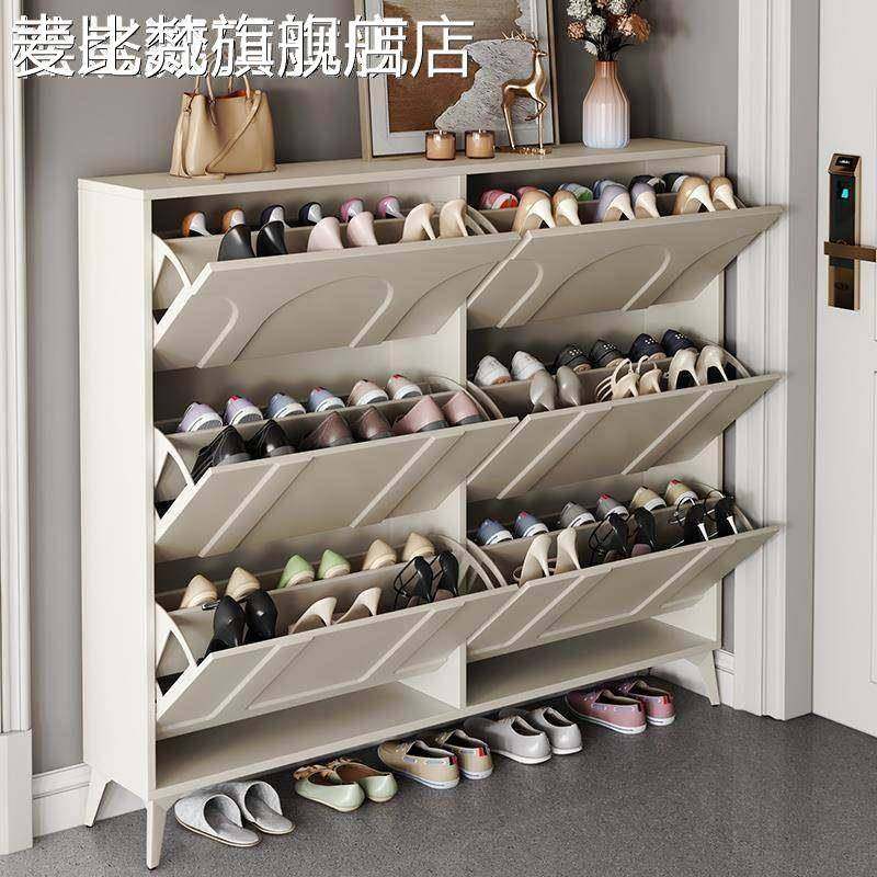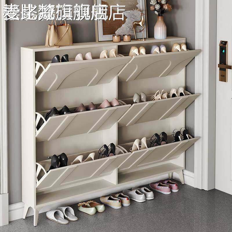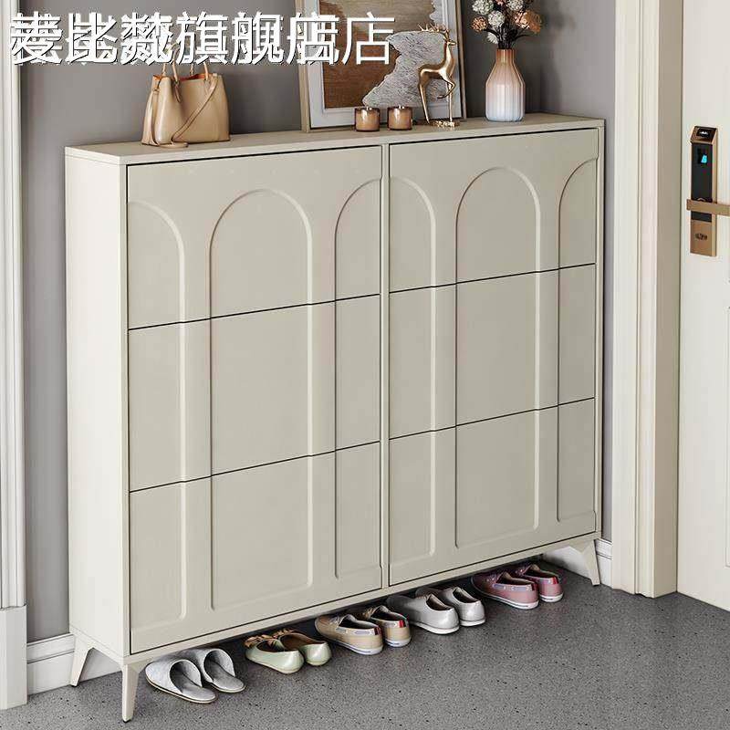 麦比梵奶油风超薄翻斗鞋 柜 家用门口新款2024爆款入户玄关 柜 一体收纳鞋 架摆件饰品床笠拉车