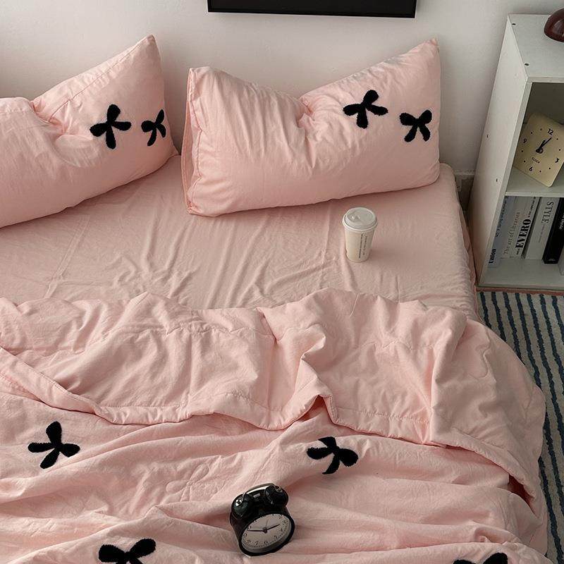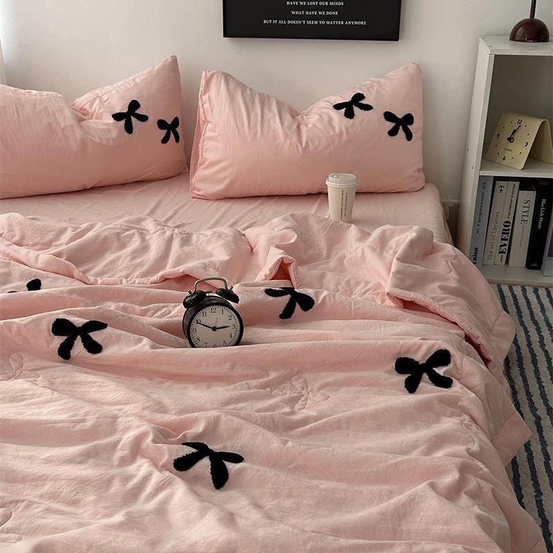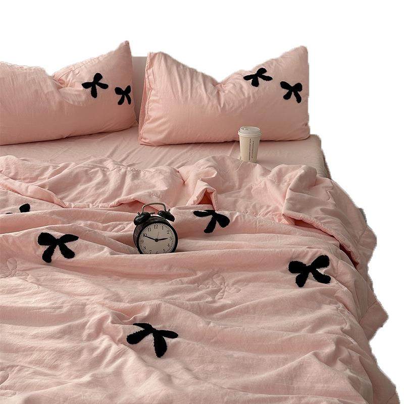2025新款水洗棉毛巾绣蝴蝶结夏被四件套家用薄被子夏凉被夏季被芯