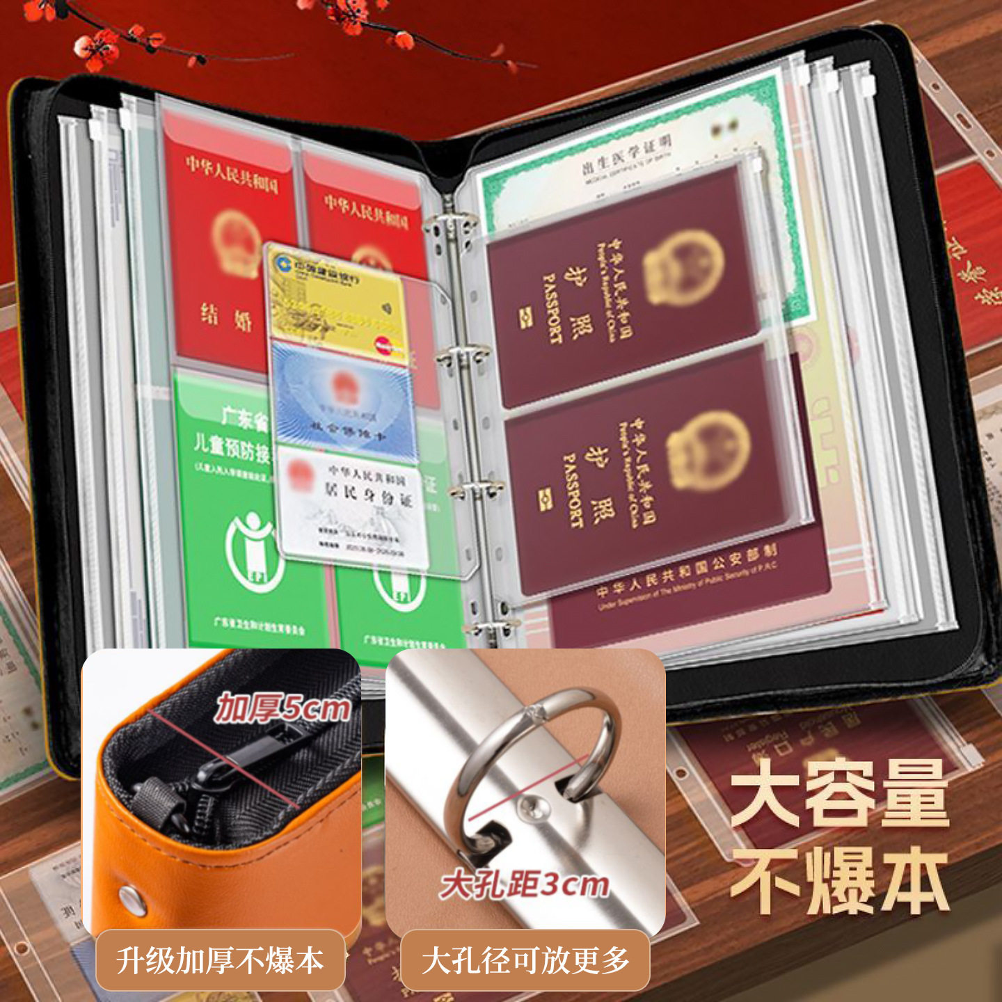 家庭证件收纳包活页a4拉链收纳册证书档案夹孕妇产检档案房本文件袋户口本疫苗本出生证明护照驾驶证活页册