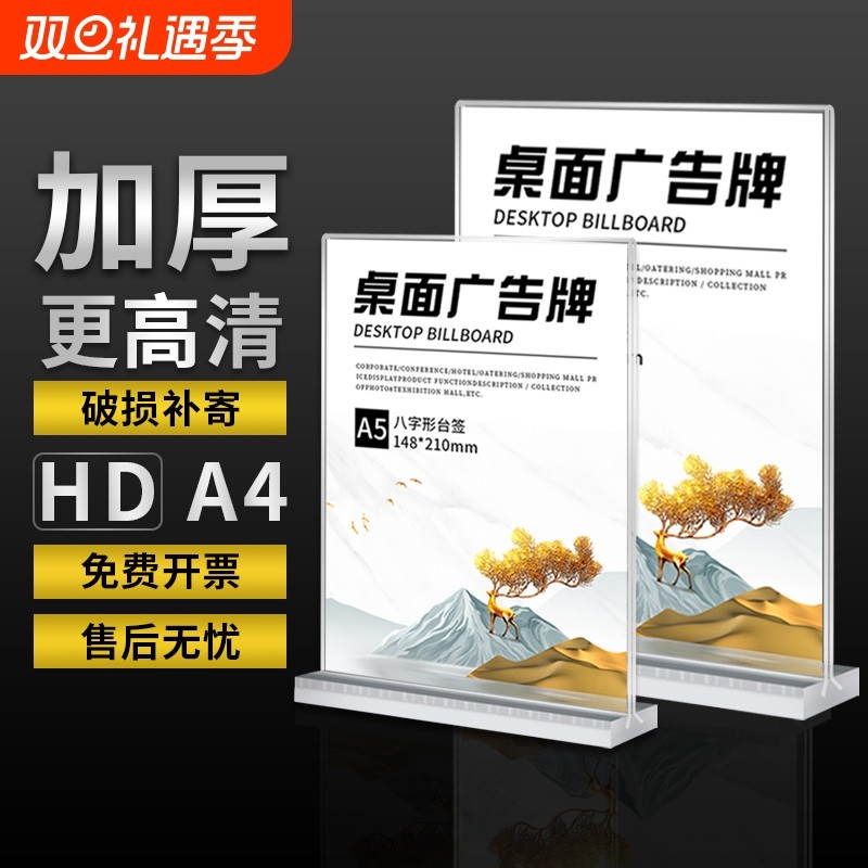 亚克力台卡桌牌双面透明立牌a4抽拉强磁台签展示牌A5桌卡个性创意A6餐牌酒水晶定制菜单广告价目表T型展示架L