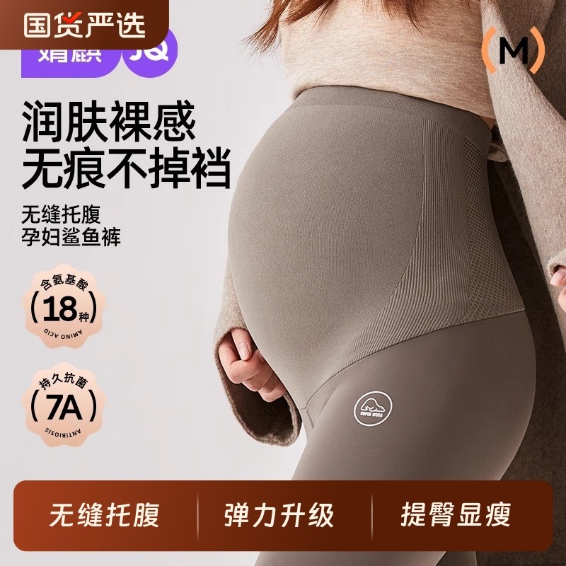 十月结晶孕妇打底裤子小个子瑜伽裸感不勒肚子鲨鱼裤秋冬季款外穿