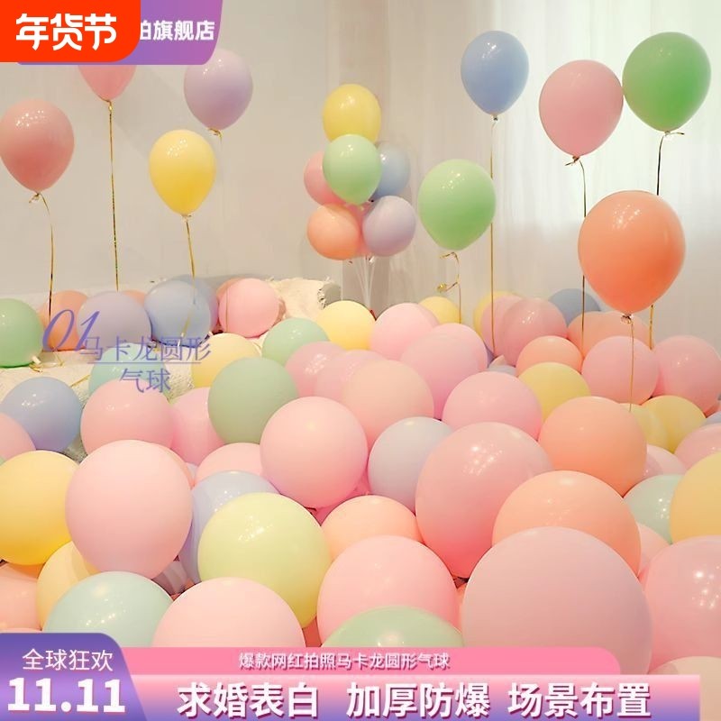 加厚圆形气球马卡龙气球婚房装饰婚礼布置创意结婚生日场景装扮