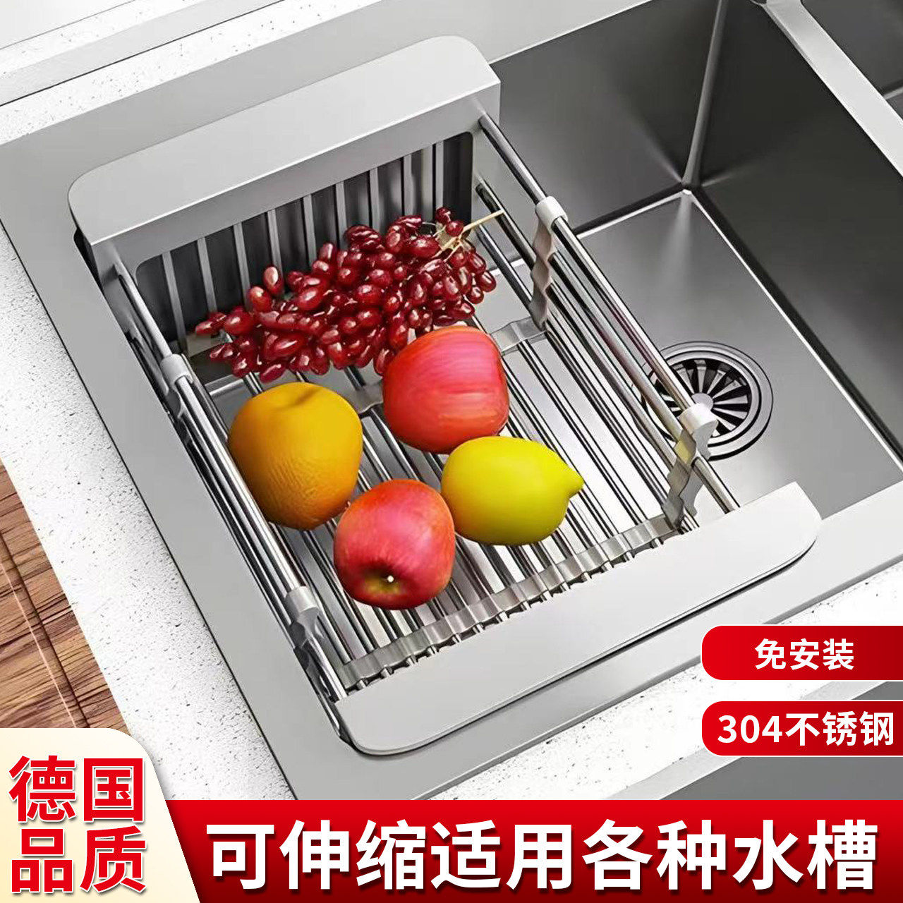 德国厨房水槽沥水架水池碗碟置物架沥水碗盘架可折叠伸缩沥水篮