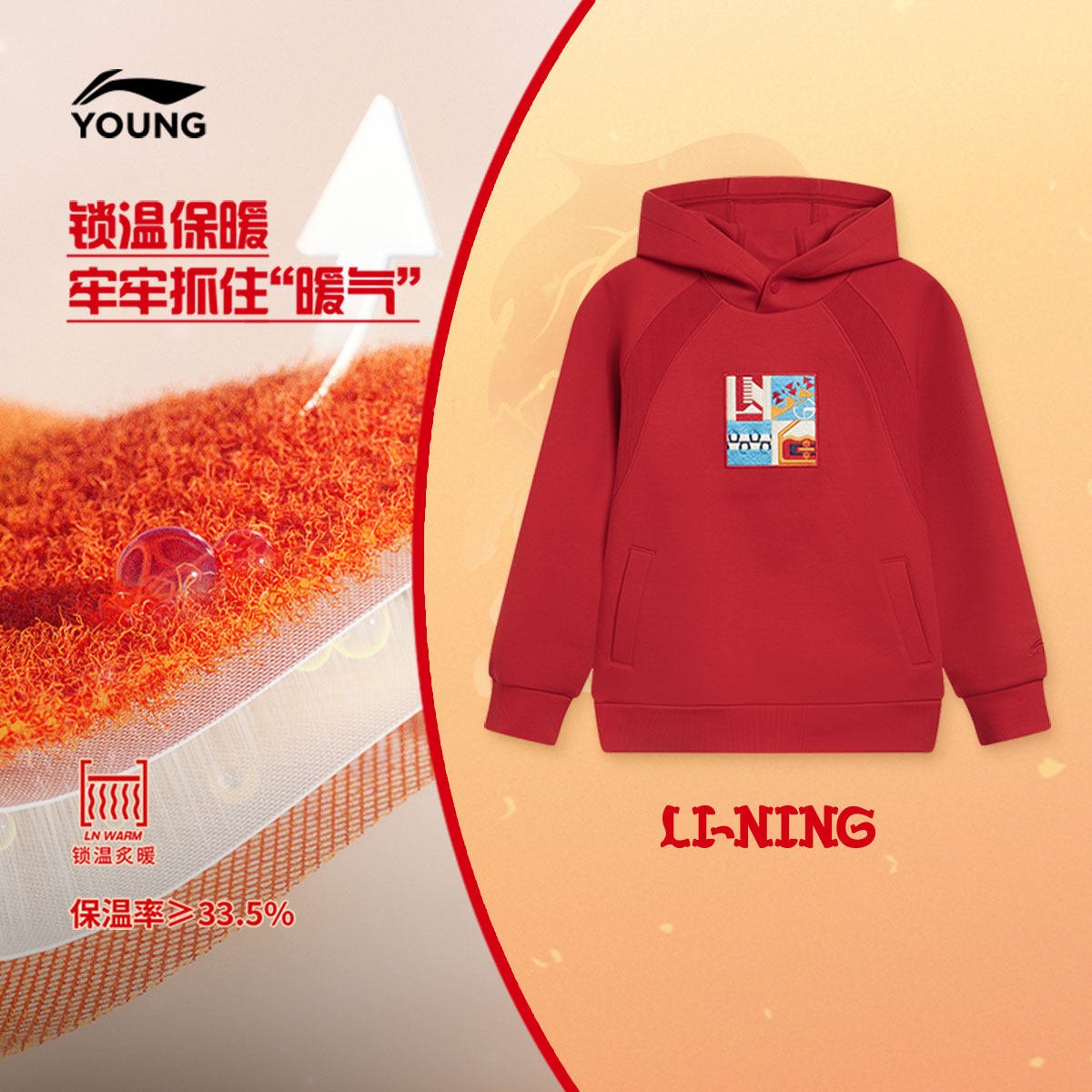 李宁童装卫衣男女大童运动生活系列舒适连帽青少年春季休闲童装