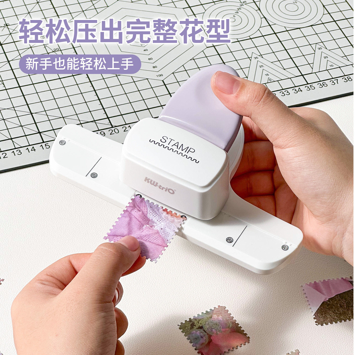 三年二班X可得优邮票压花器儿童手工制作diy打孔器邮票压纸器大号手账花边压纹打花器拼贴手工素材压花工具
