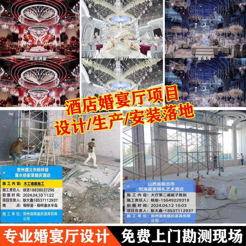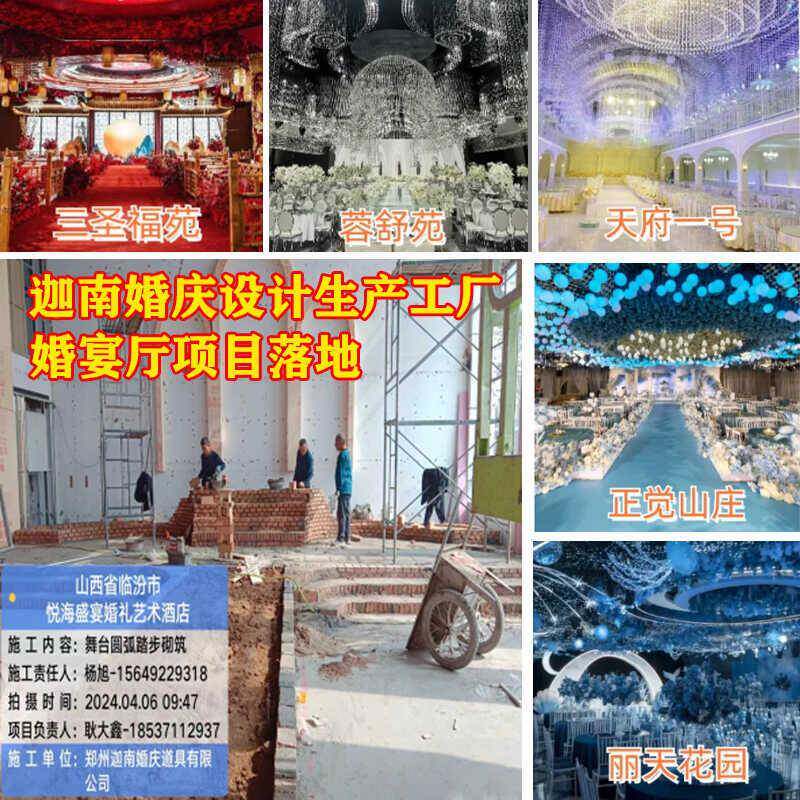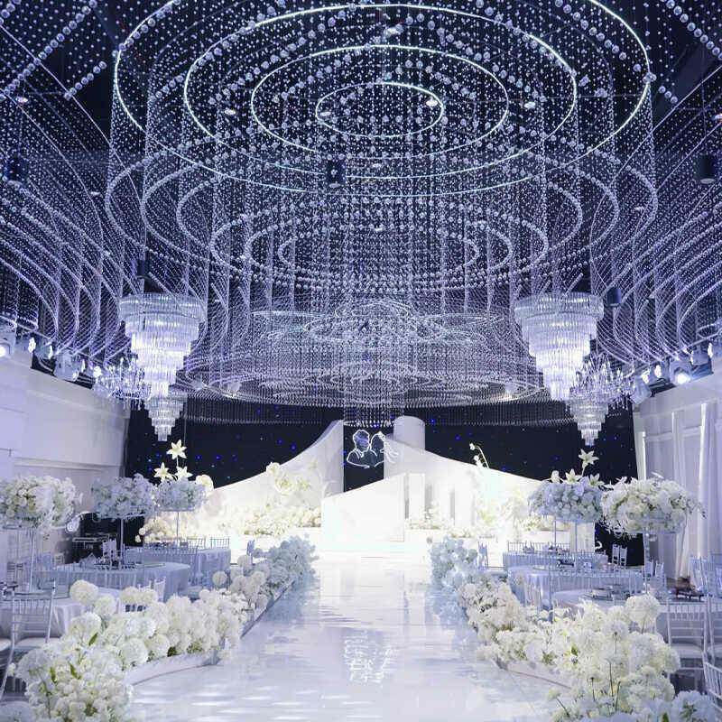 婚礼堂发光水晶欧式吊灯水晶珠帘组合菠萝珠吊顶灯设计施工落地