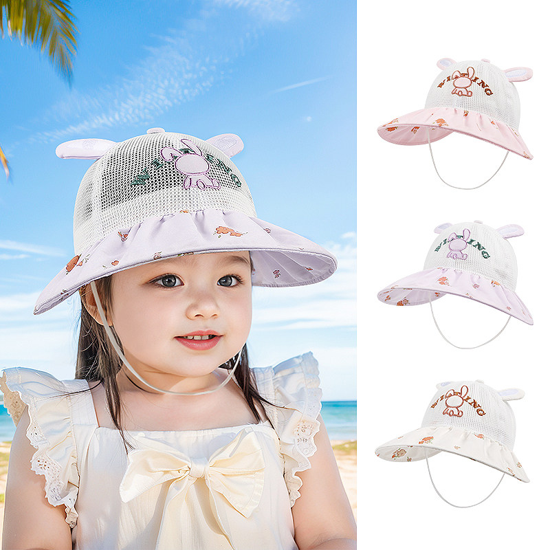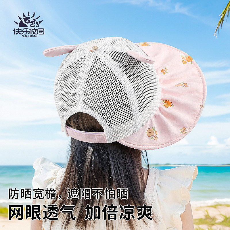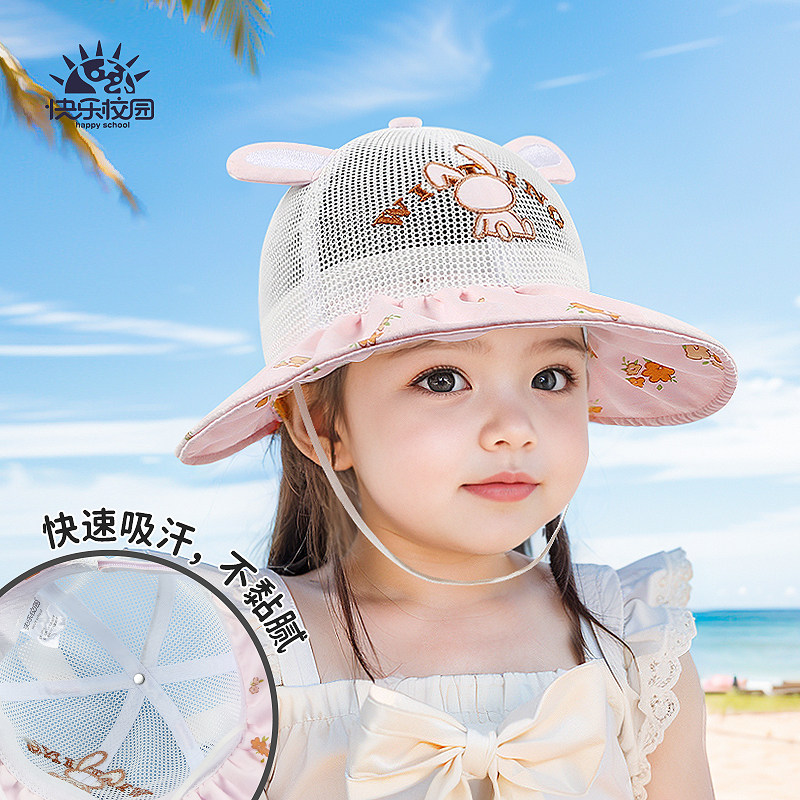 快乐校园夏季女童可爱网眼盆帽女孩户外遮阳镂空公主帽女宝宝防晒