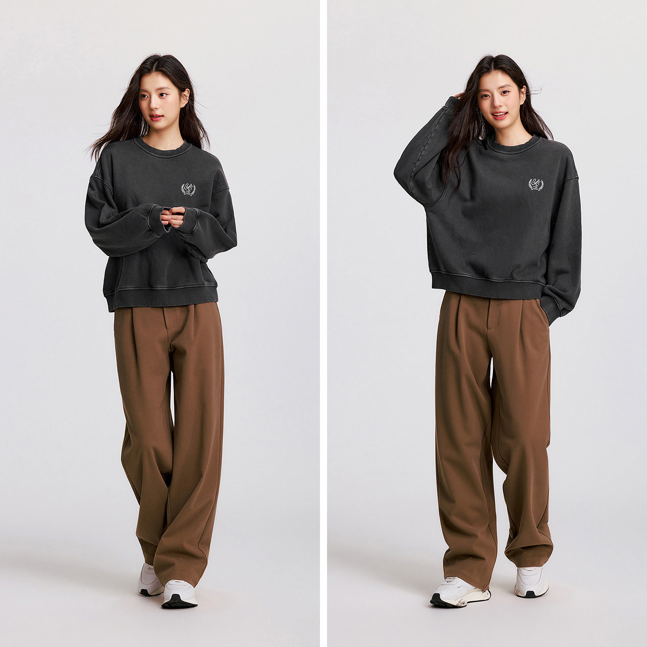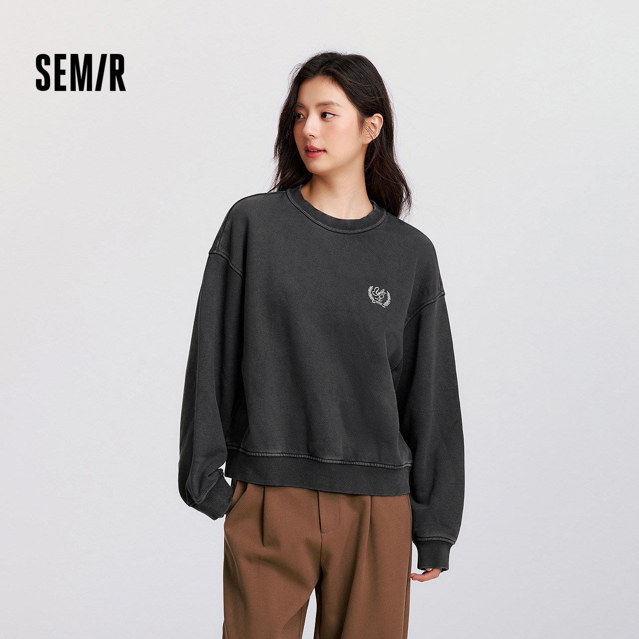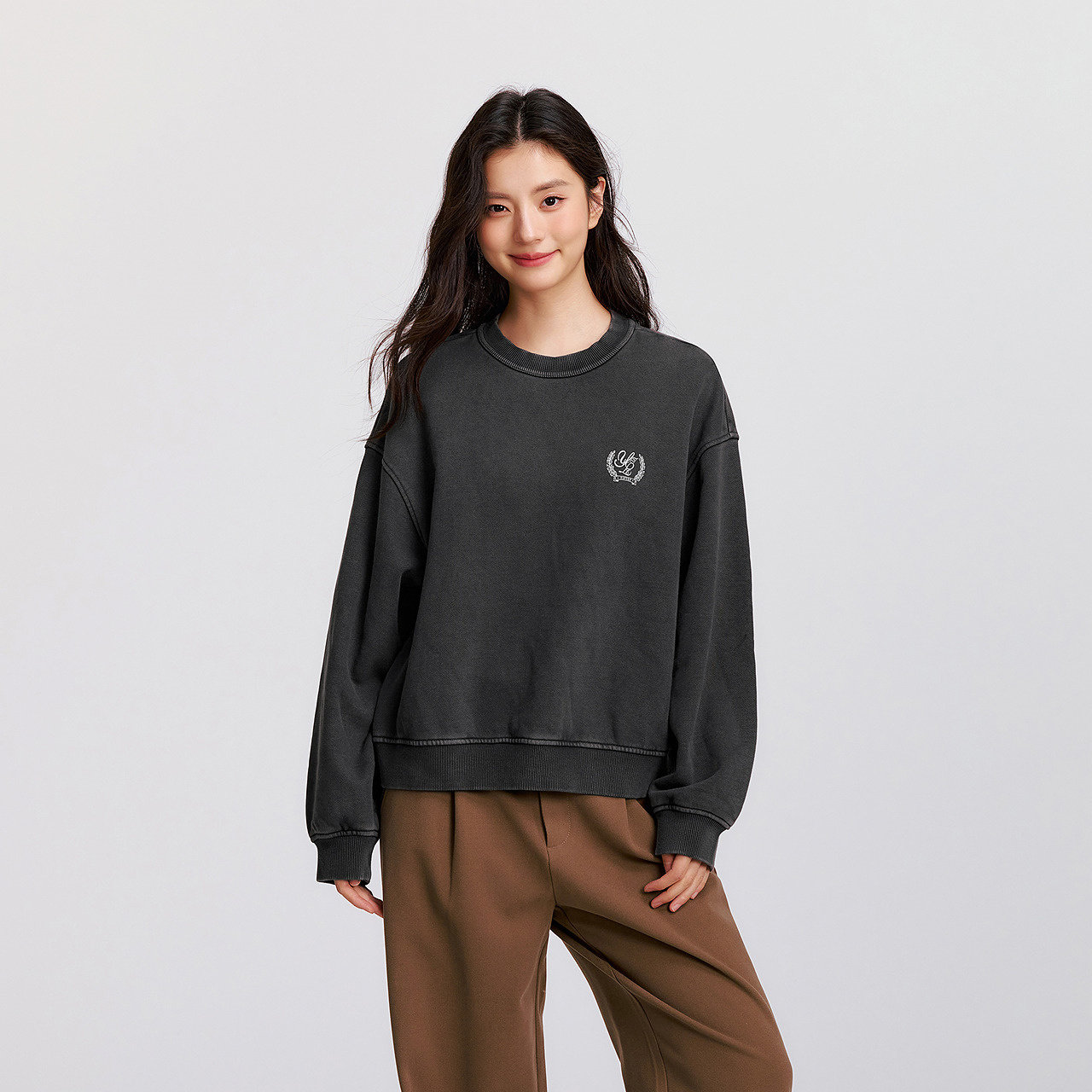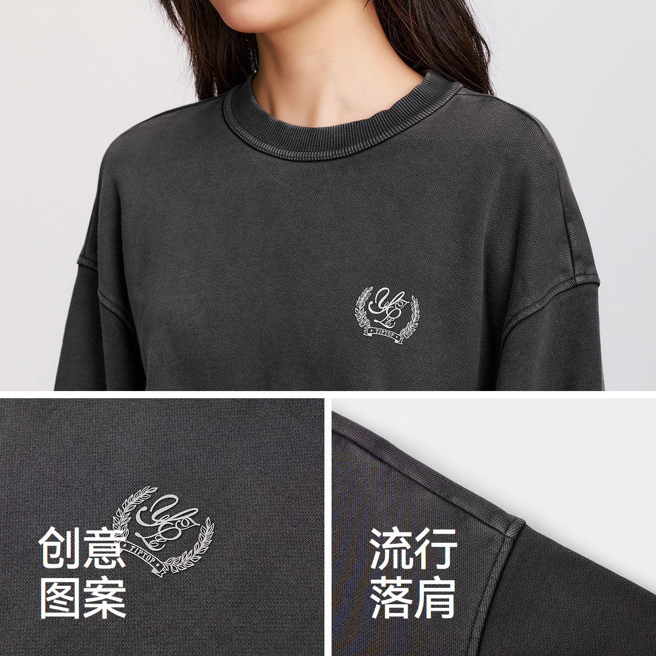 森马卫衣女冬重磅宽松落肩抓绒打底衫做旧复古街头盐系潮流套头衫