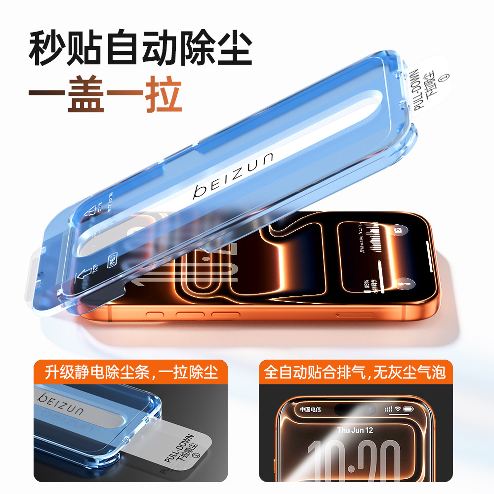 倍思无纹膜适用苹果iPhone17钢化膜AR抗反射16ProMax保护膜15Pro无尘仓14手机贴膜13全屏覆盖12抗摔11防爆Air