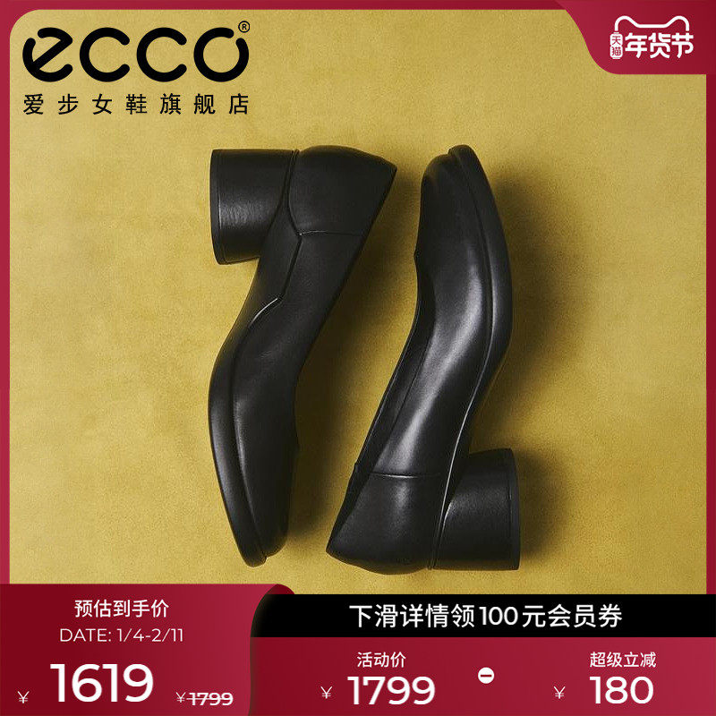 ECCO爱步女鞋单鞋 真皮粗跟高跟鞋百搭小皮鞋 雕塑奢华222493