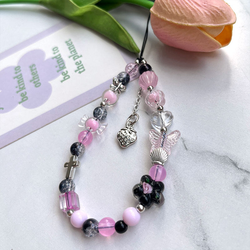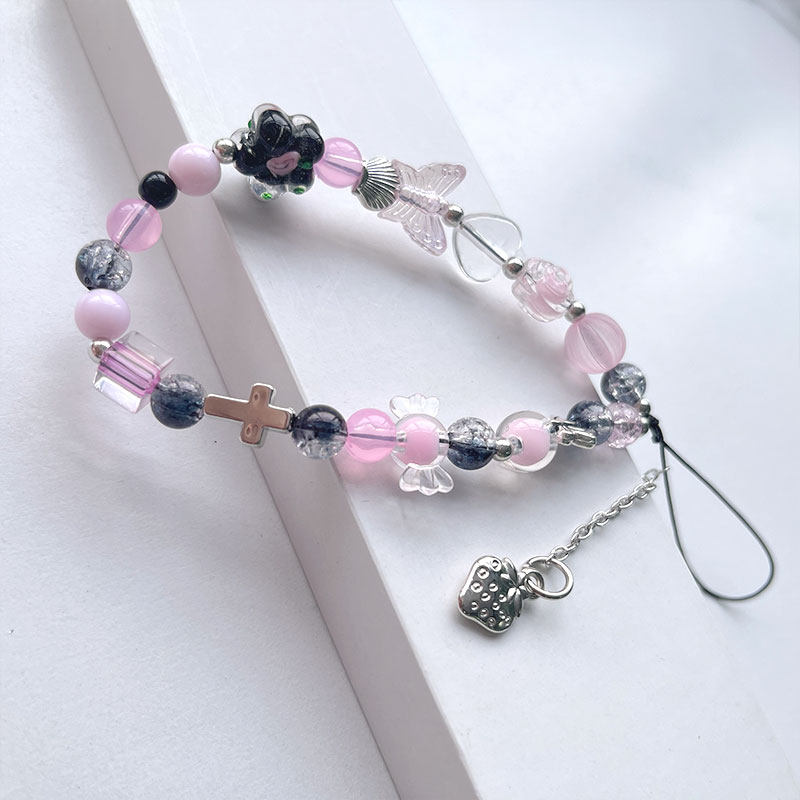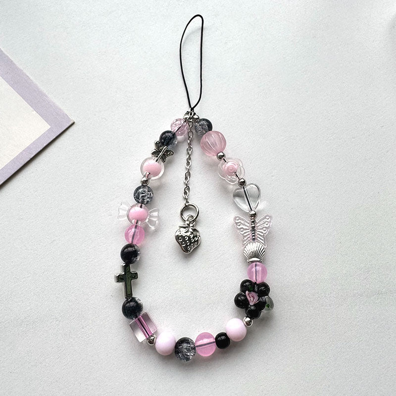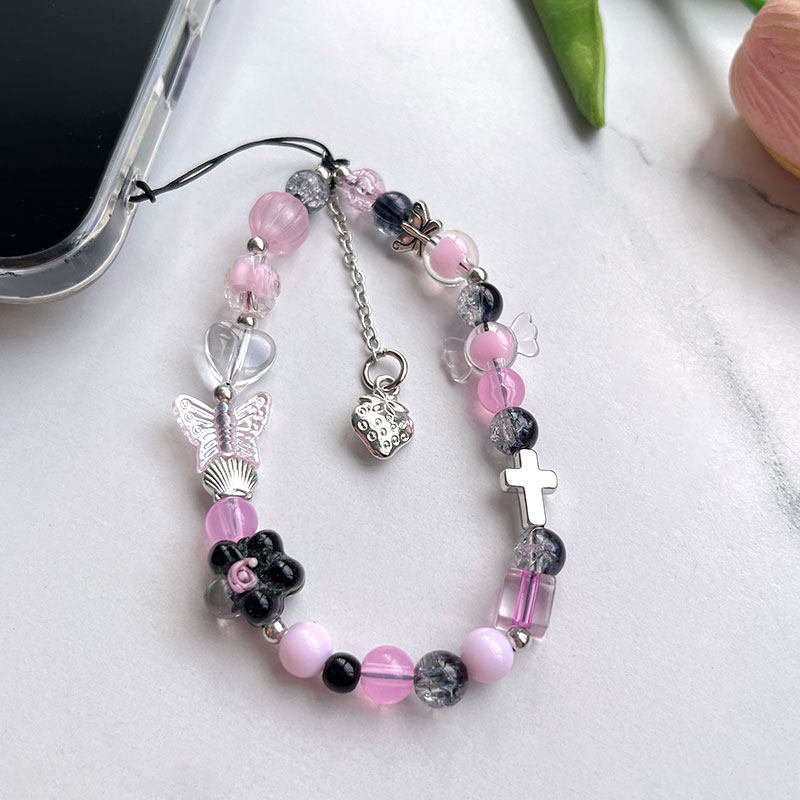 高乐多创意手机挂链配饰炫酷风辣妹少女挂坠水晶蝴蝶结实防摔防掉通用手机diy串珠好看潮流牢固短款手机配饰