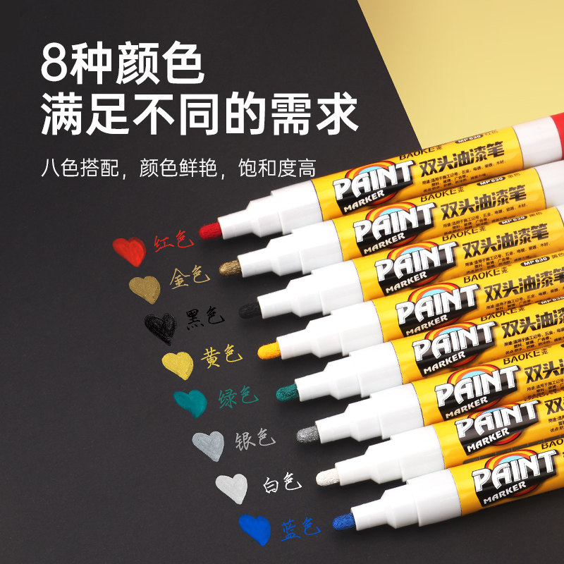 宝克双头油漆笔极细彩色笔签到笔diy卡纸手绘高光笔金银色白色油性记号笔补漆笔工业不易掉色防水画衣服MP630