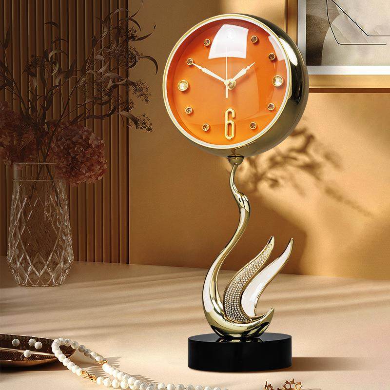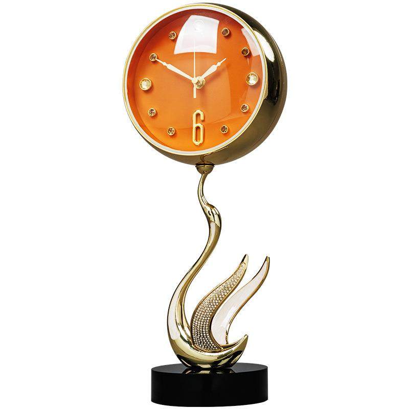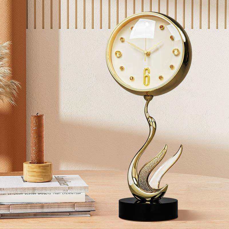 天鹅金属座钟现代轻奢台式座钟客厅桌面时钟装饰坐钟外贸钟表WM