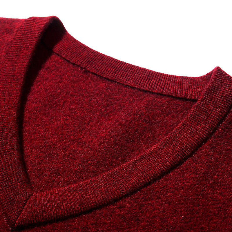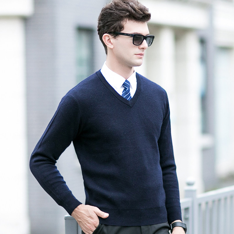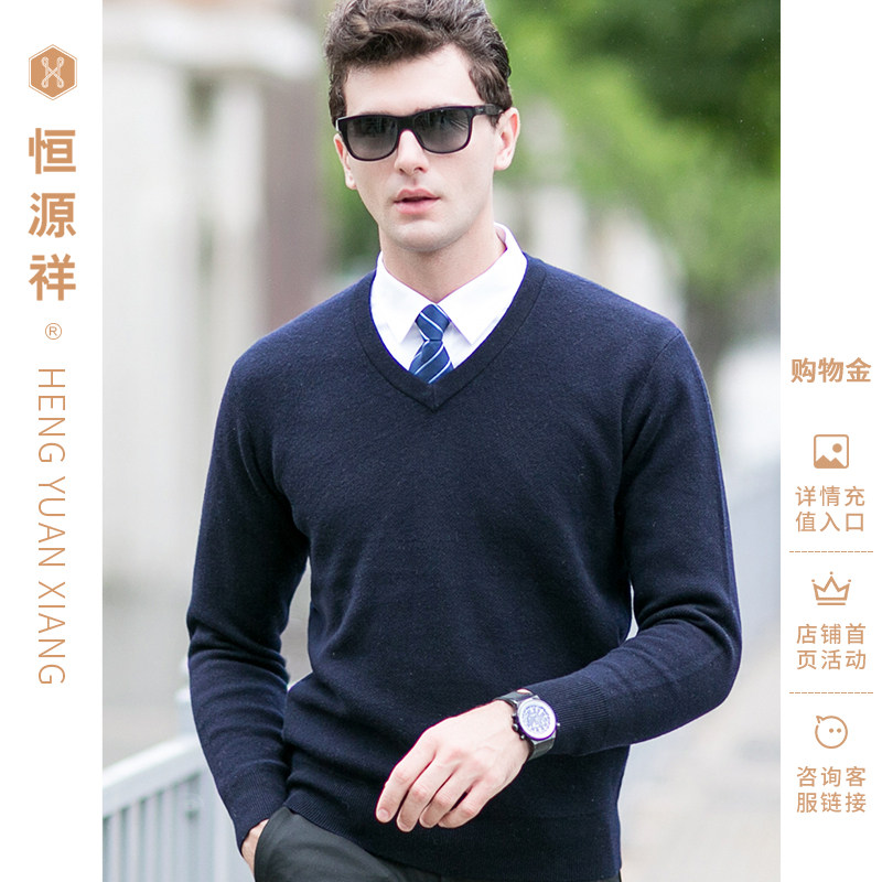 恒源祥V领羊毛衫男2025秋冬季纯色套头打底衫上衣保暖针织毛衣厚