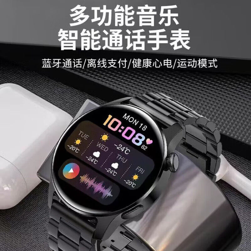 2025新款智能手表男士运动手环测血压心率防水蓝牙音乐监测健康睡眠测量