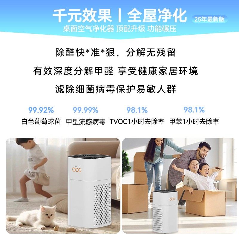 2025新款空气净化器家用桌面负离子过滤神器小型大空间猫毛净化机