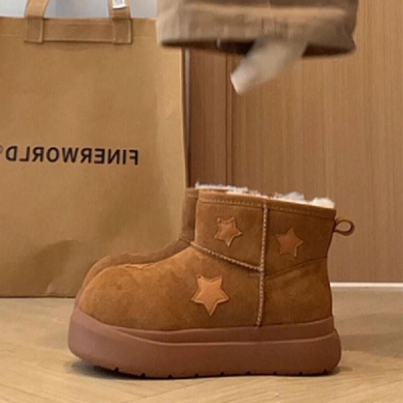 miu家厚底雪地靴女冬季真皮短靴羊毛侧拉链增高厚底加绒毛毛棉鞋