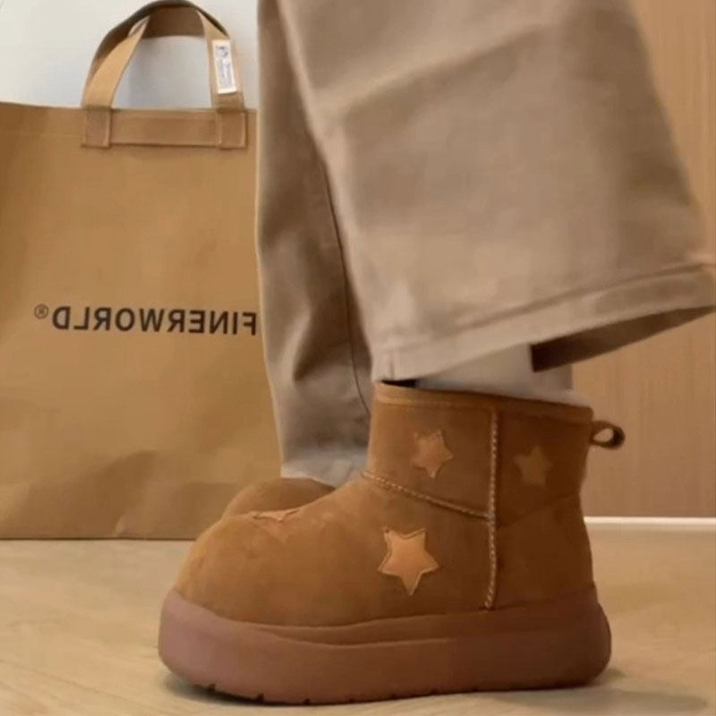 雪地靴女款2025新款冬季加绒加厚大头面包鞋保暖短靴厚底雪地棉鞋