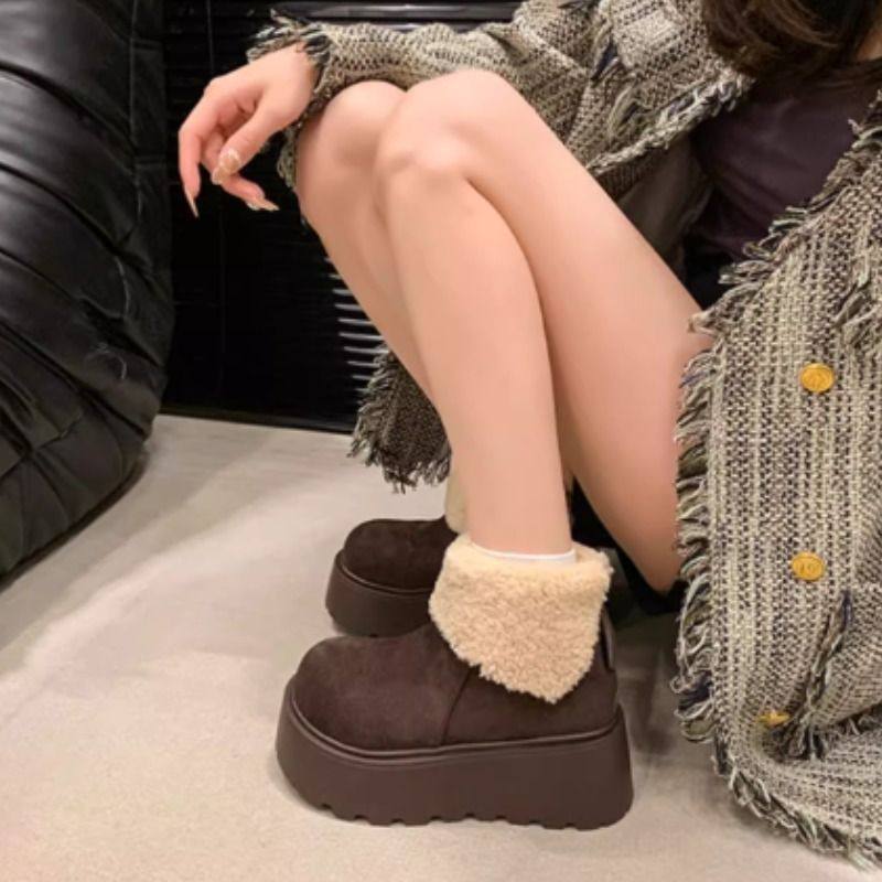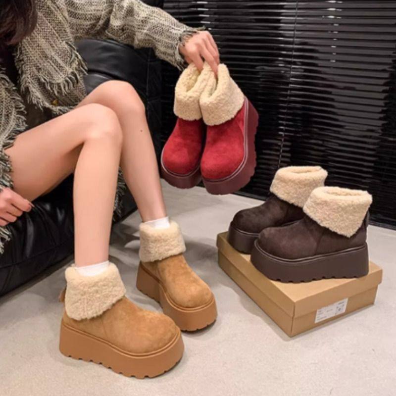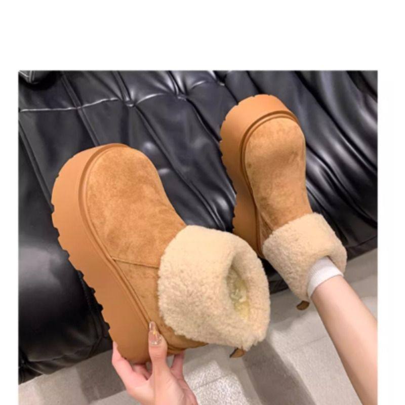厚底增高雪地靴女款2025秋冬季加绒保暖毛毛短靴丑萌大头棉鞋高跟