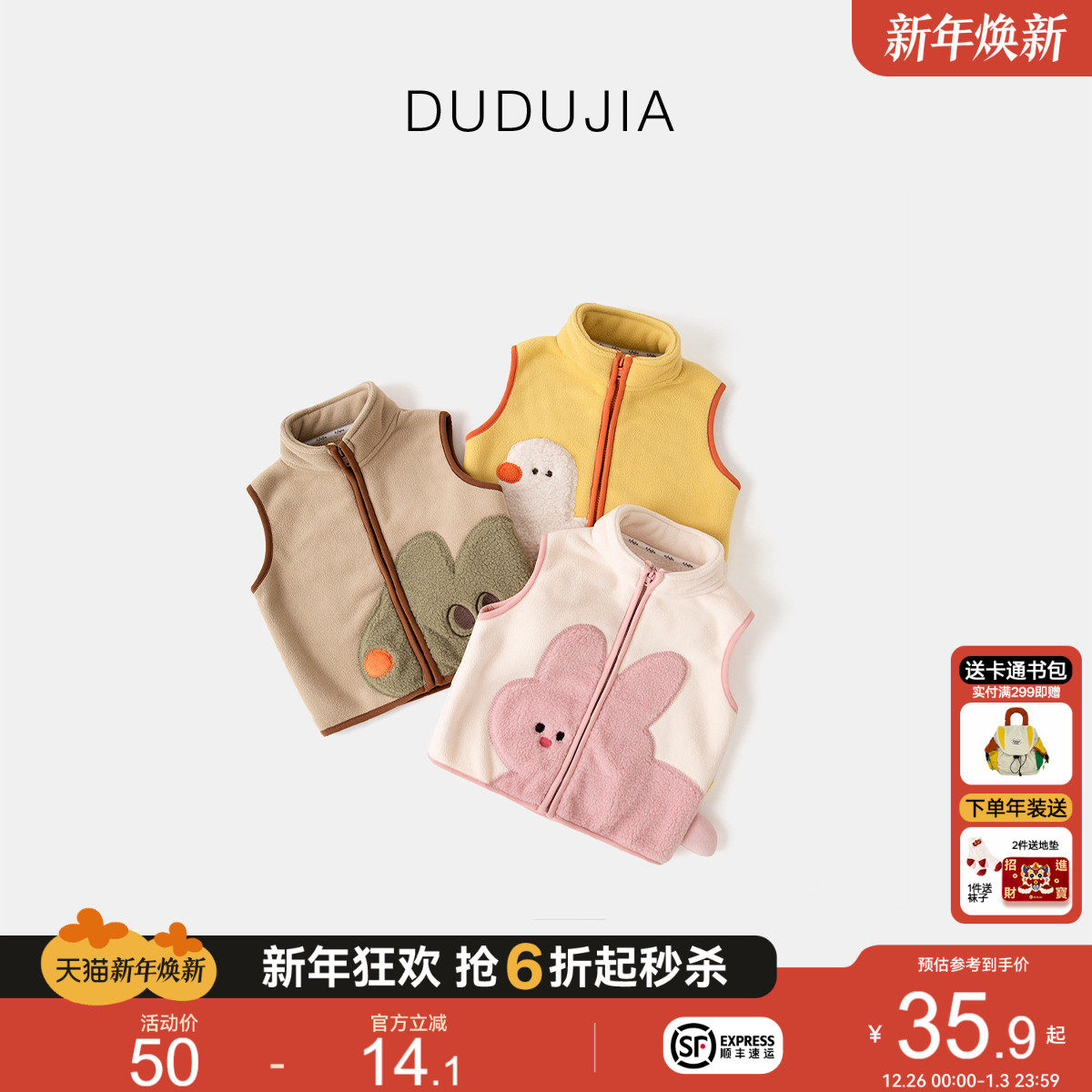 小猪大卫男女宝宝贴身马甲可爱造型恐龙狐狸颗粒绒磨毛马夹1-3岁