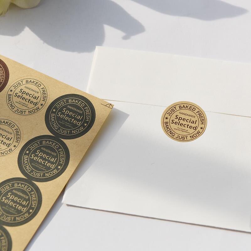 牛皮纸不干胶信封礼品礼物袋手帐圆形小封口贴纸diy装饰烘培复古英文