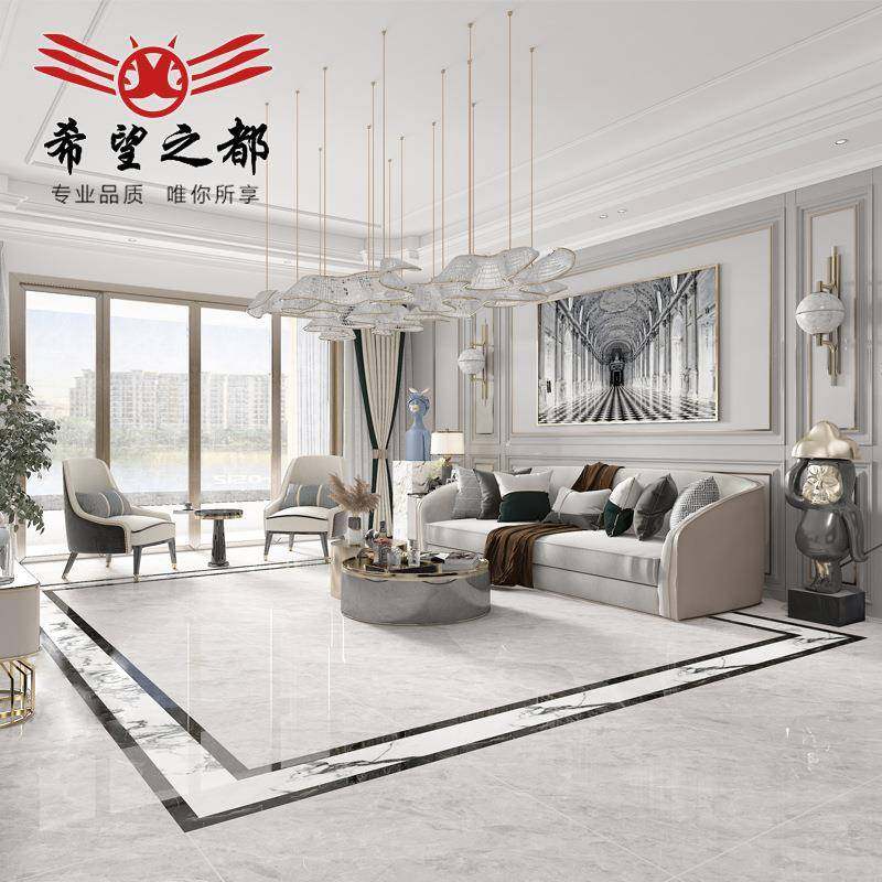 客厅地砖900x900连纹通体大理石瓷砖灰色现代简约客餐厅地板砖