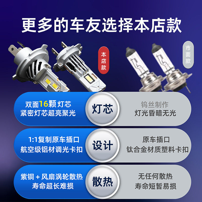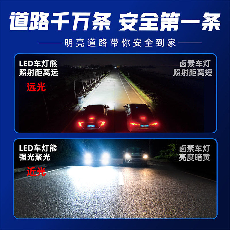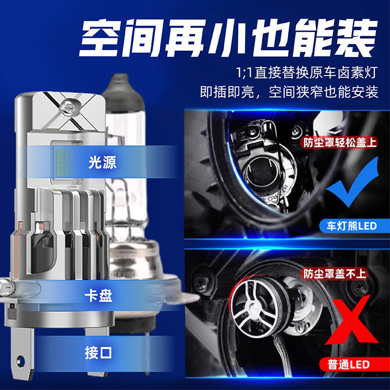 直插式LED汽车大灯泡H7近光H9远光9005超亮聚光强光极耀光H4改装