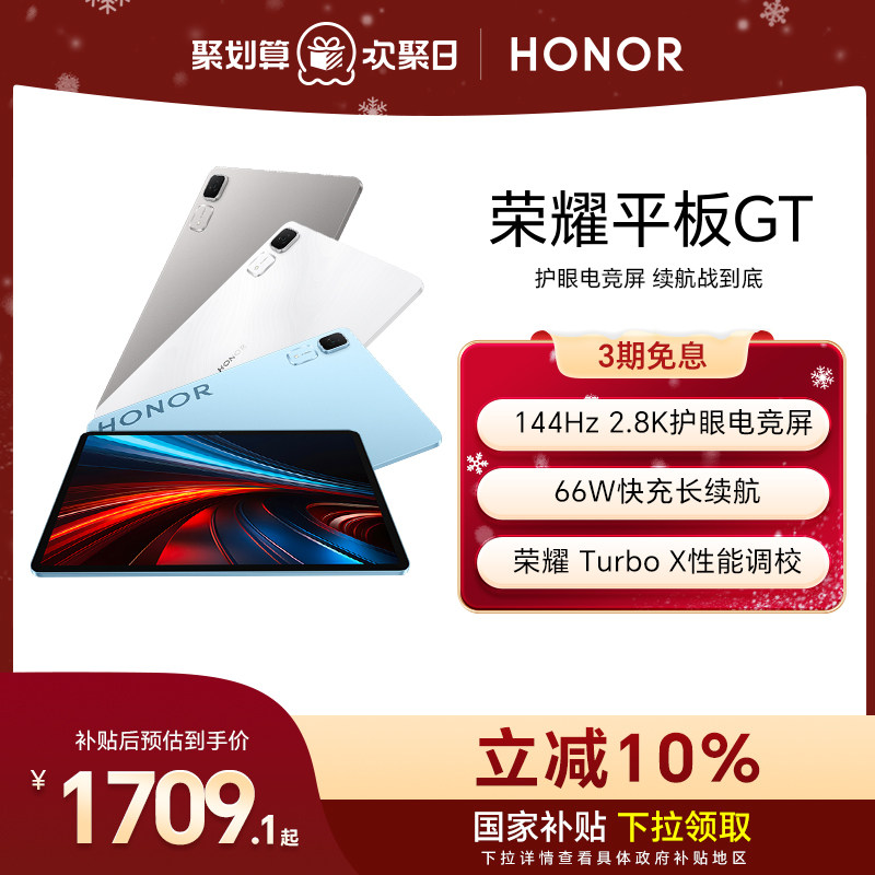 【政府补贴10%】HONOR/荣耀平板GT 平板电脑 2.8K护眼电竞屏 长续航 游戏办公AI学习官方旗舰店正品新品gt