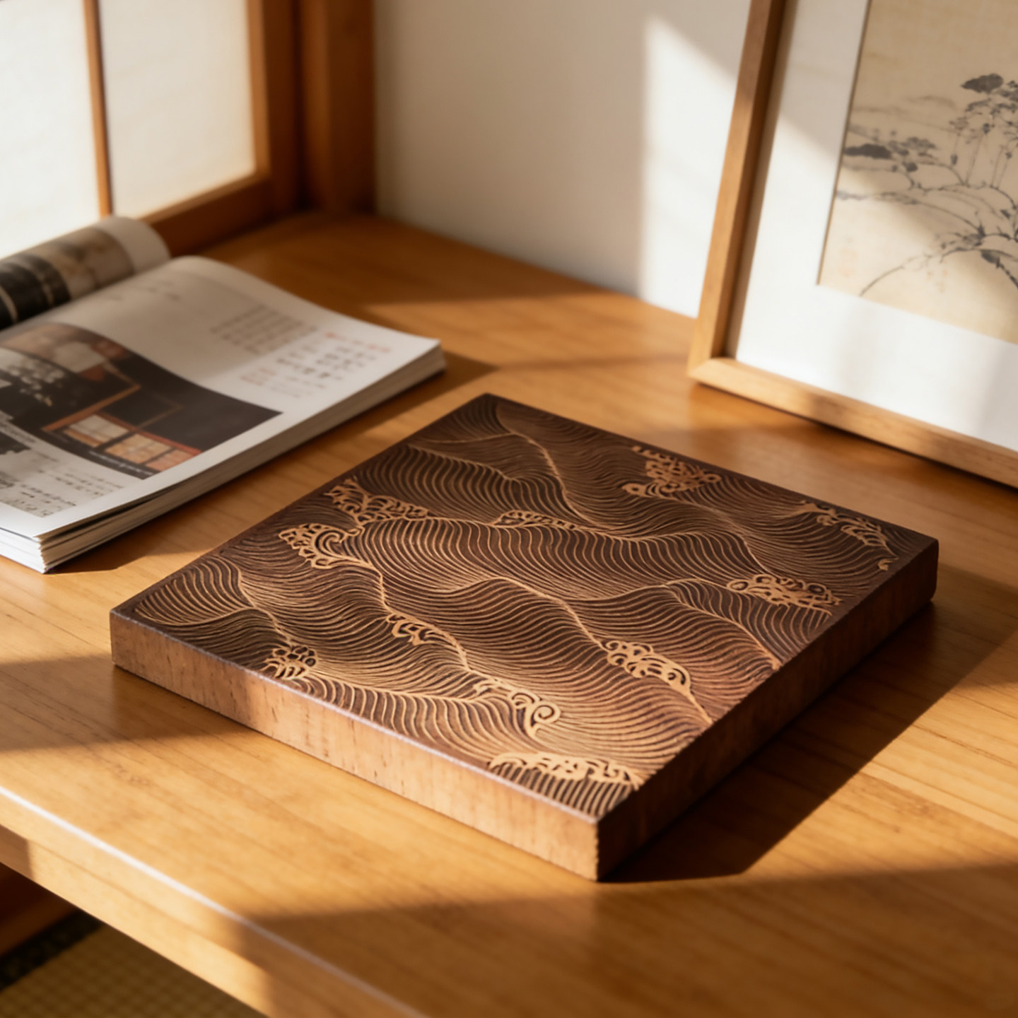 【花梨木系列】仿宋砑花笺板宋沈辽海水纹苏轼久留帖花草纹木雕版