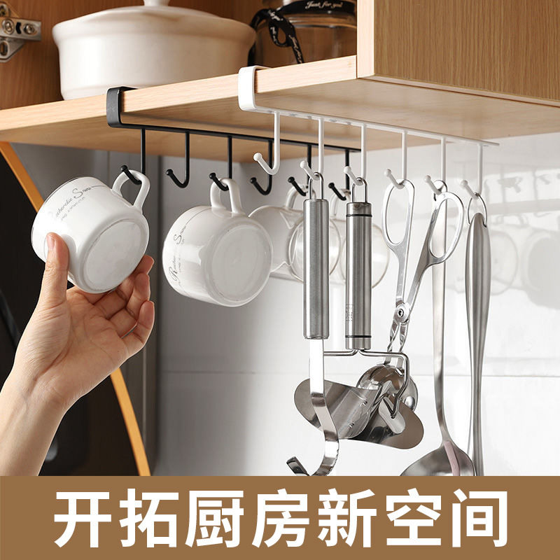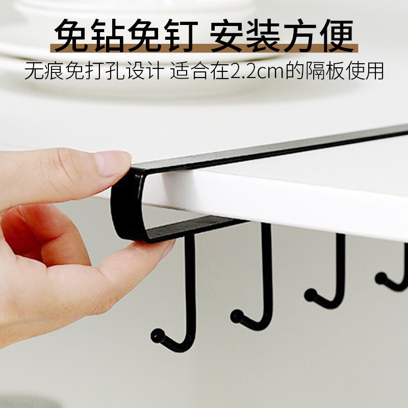 免打孔家用厨房杯架子置物架水杯架橱柜挂架悬挂式挂钩整理收纳架