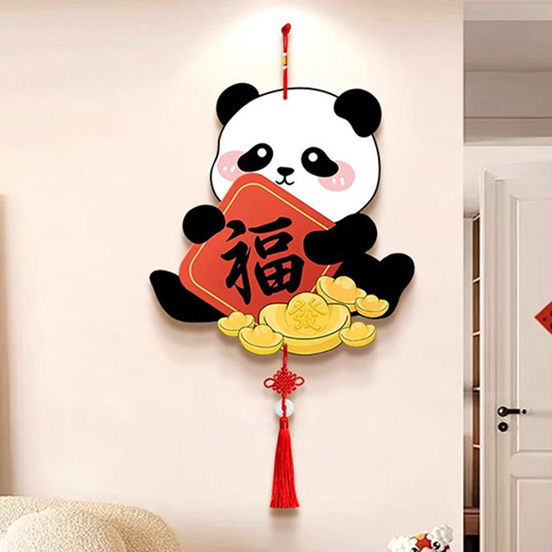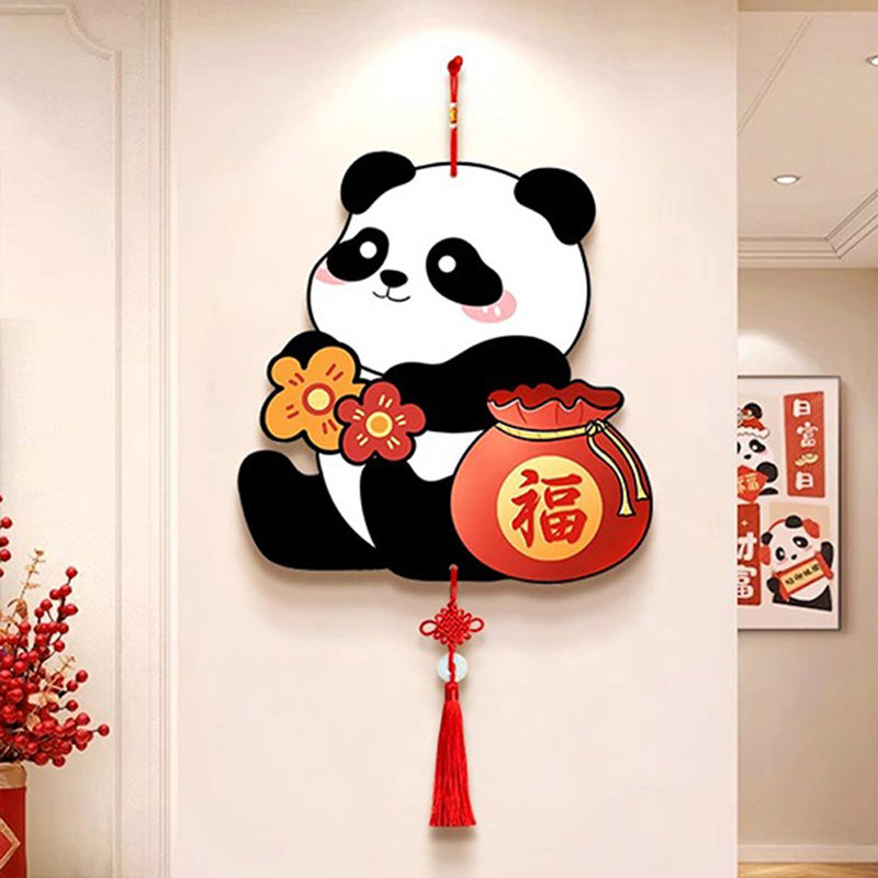 招财进宝创意装饰画客厅电视背景墙高级感挂饰入户玄关熊猫挂件画
