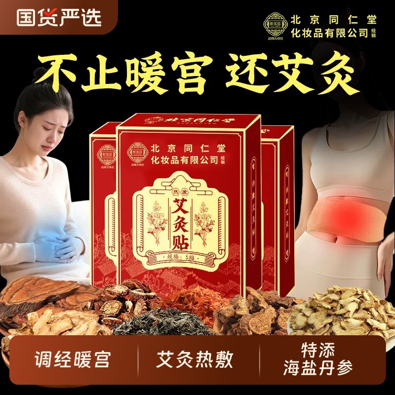 北京同仁堂艾灸贴艾草自发热暖宝宝热敷宫暖祛湿寒去湿排毒调理肚