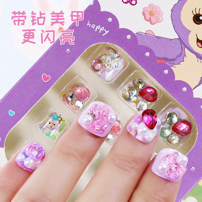 时尚儿童指甲贴美甲片爱莎公主女宝宝美甲纹身带水晶钻石套装冰雪奇缘卡通艾莎幼儿园宝宝贴画圣诞节礼物奖品