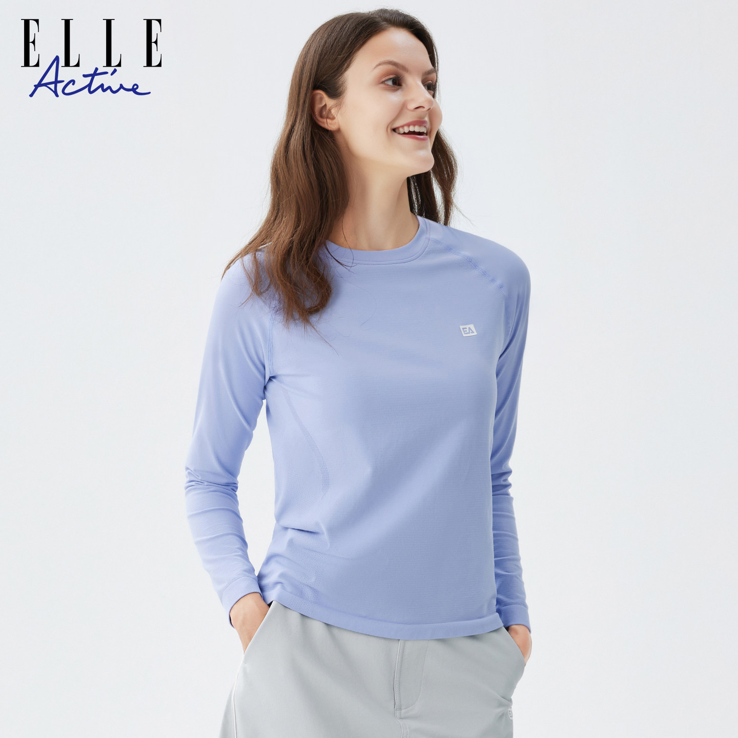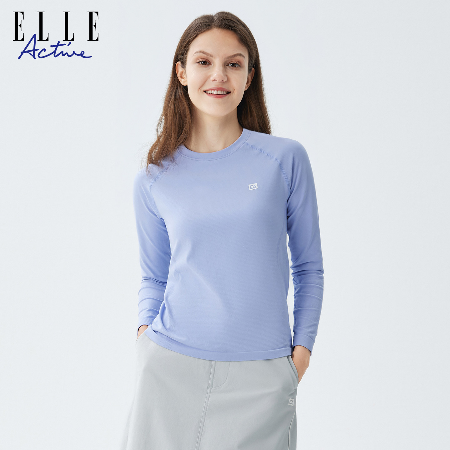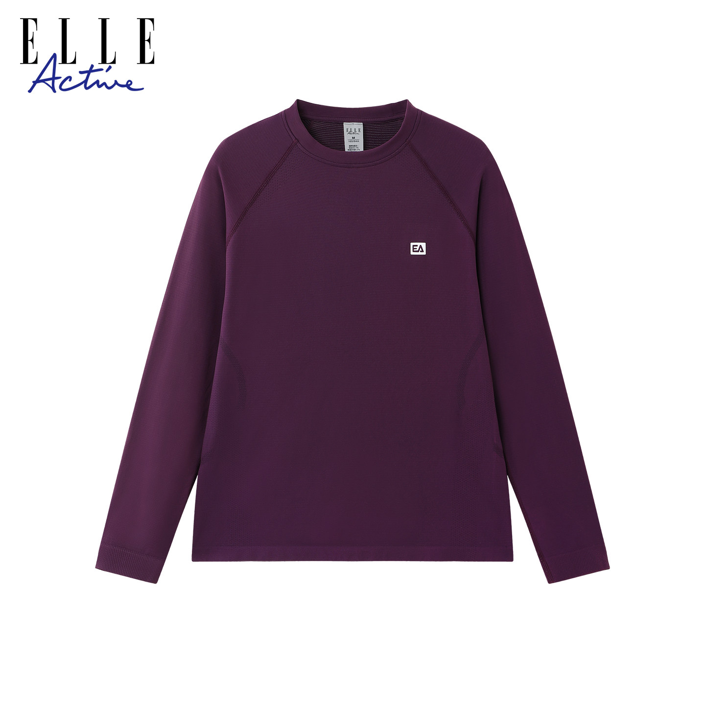 ELLE Active一体织长袖t恤女显瘦透气跑步瑜伽运动上衣圆领套头衫