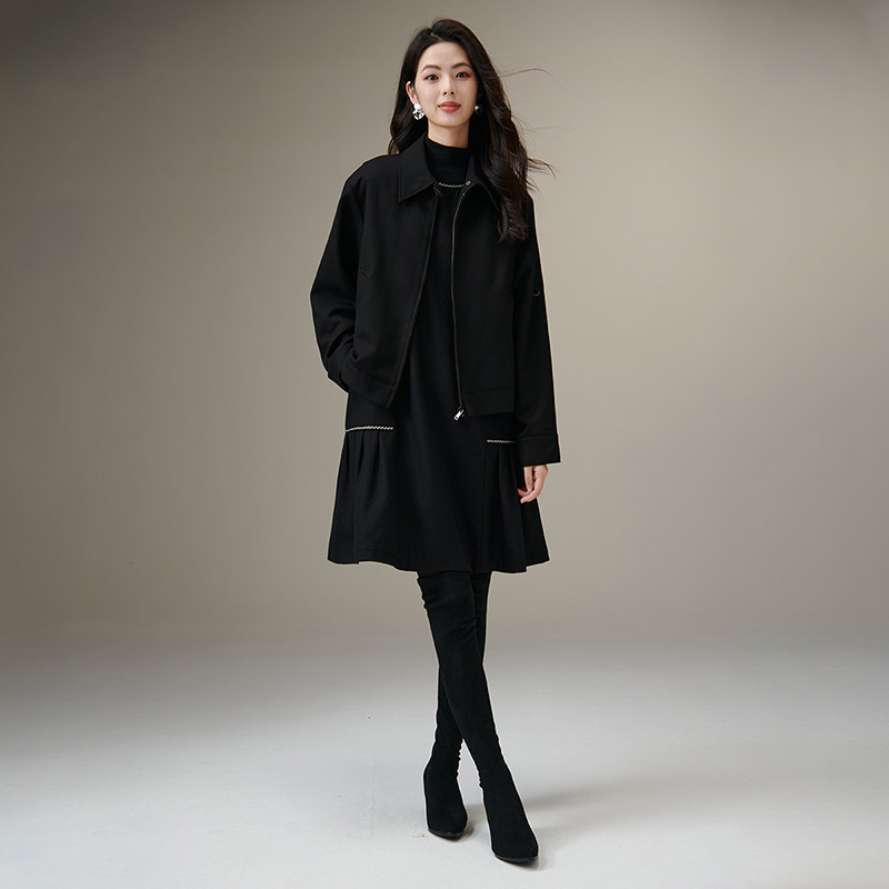 含羊毛,有里衬,隐藏拉链设计,大摆裙摆