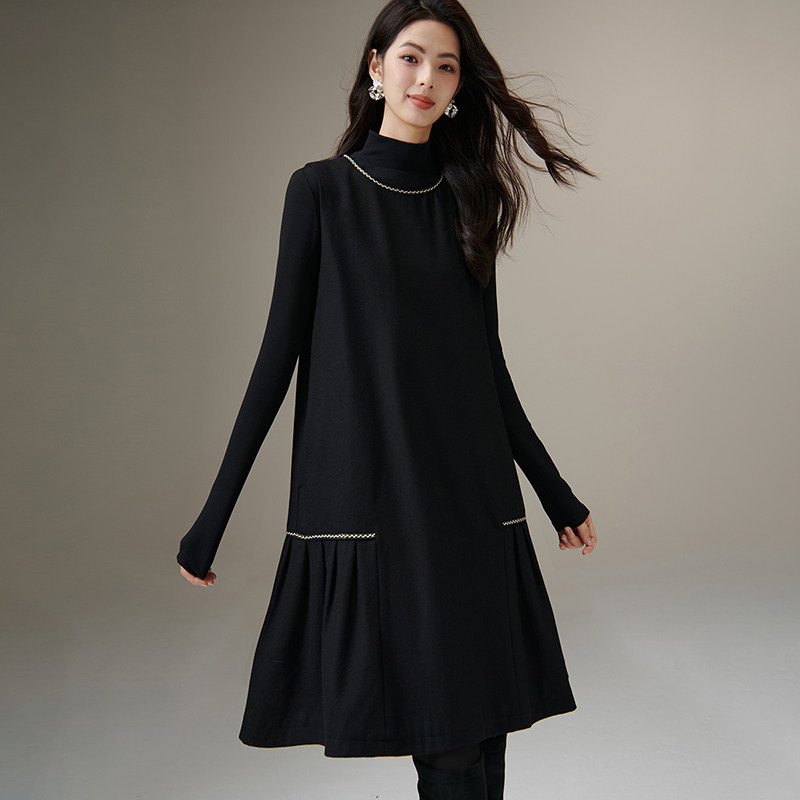 晚白2025年秋冬新款小香风圆领气质裙子大方得体宽松无袖连衣裙女