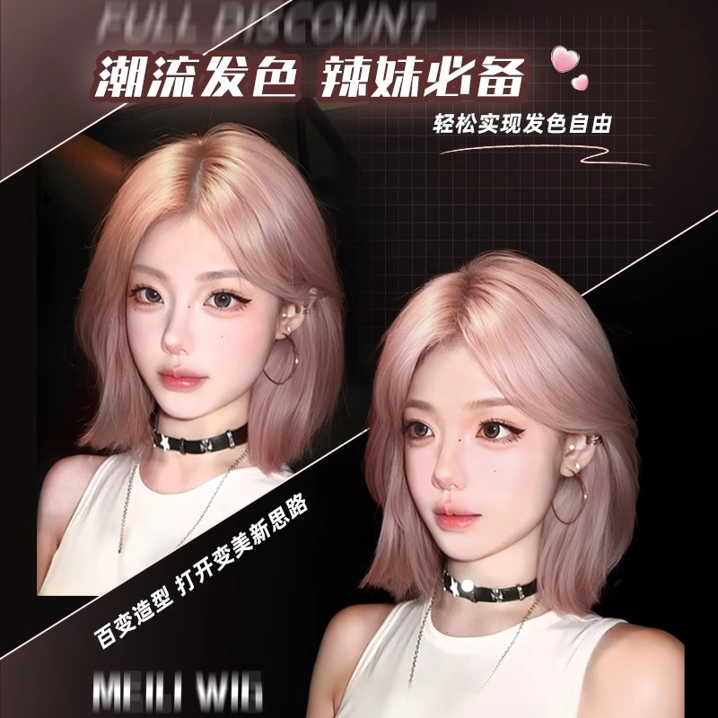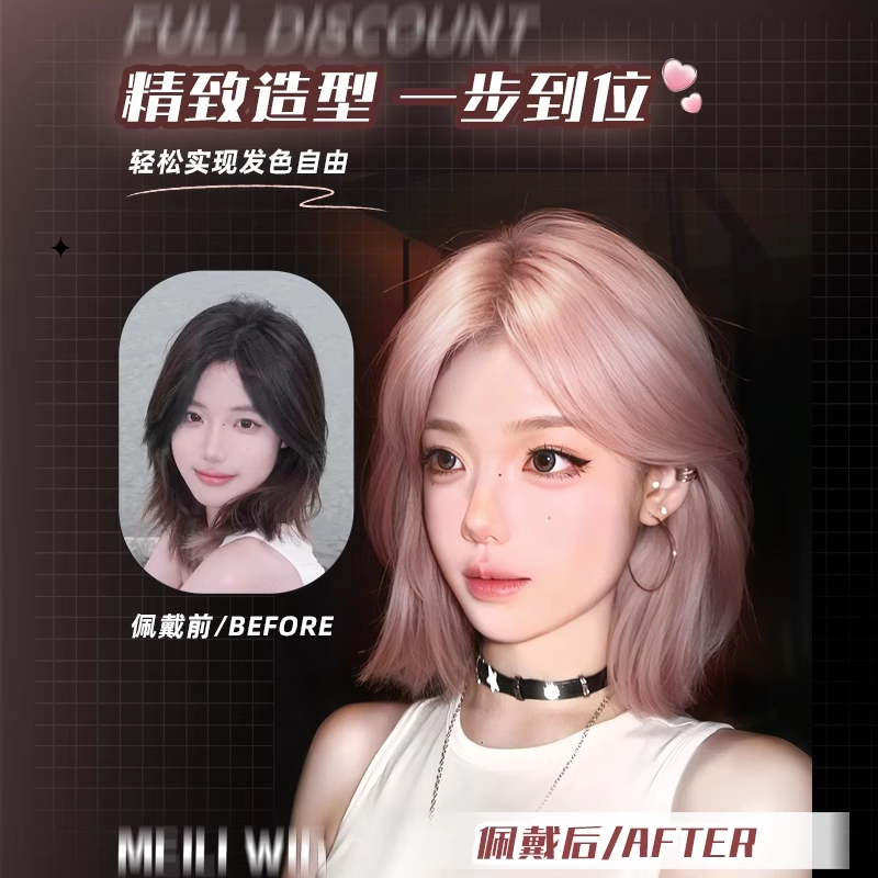 反骨甜心假发全头套女短发中分韩系新款仿真发日常整顶假发套刘海
