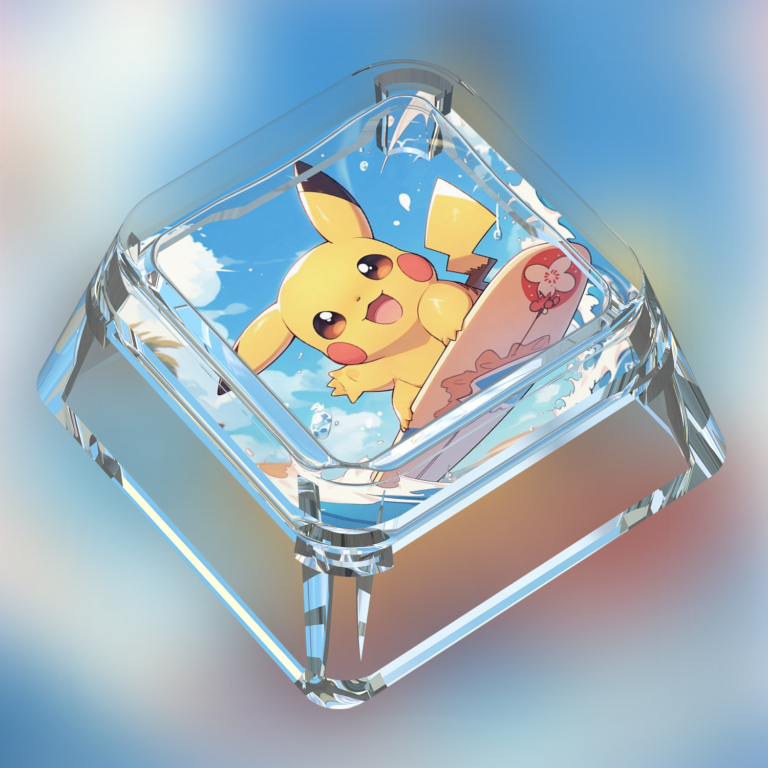 个性键帽皮卡丘十字机械键盘可爱宝可梦单个透明woting透光键帽